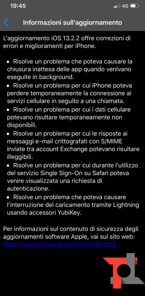 Nei dettagli del changelog di iOS 13.2.2 e di iPadOS 13.2.2