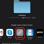 - Scegli l’app preferita per inoltrare l’invito: anche in questo caso, possiamo semplicemente scegliere di copiare il link ed incollarlo in un’app di messaggistica oppure come testo in una mail