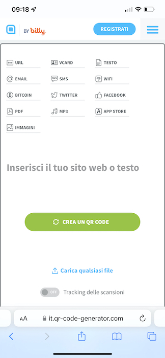 - Collegati al sito qr-code-generator.com dal tuo iPhone.