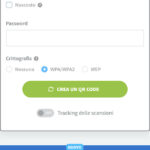 - Nei campi Nome della rete e Password inserisci il nome della rete Internet di casa e la password, quindi fai tap sul pulsante Crea un QR Code per generare un codice QR contenente le informazioni della tua rete Wi-Fi.