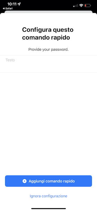- Inserisci la tua password sotto l’intestazione Configura questo comando rapido.