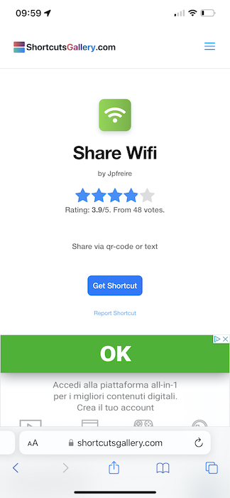 Di seguito i passaggi da seguire per sfruttare l’app Shortcuts su iPhone per la condivisione del Wi-Fi con uno smartphone Android: