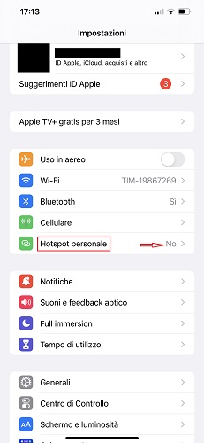 Attivare Hotspot personale su iPhone