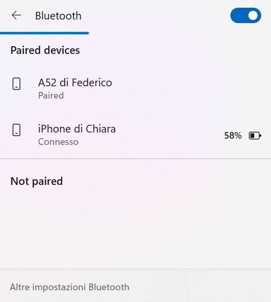 - Dal computer attendi che nella lista dei dispositivi Bluetooth associabili compaia il tuo iPhone, quindi cliccaci sopra.