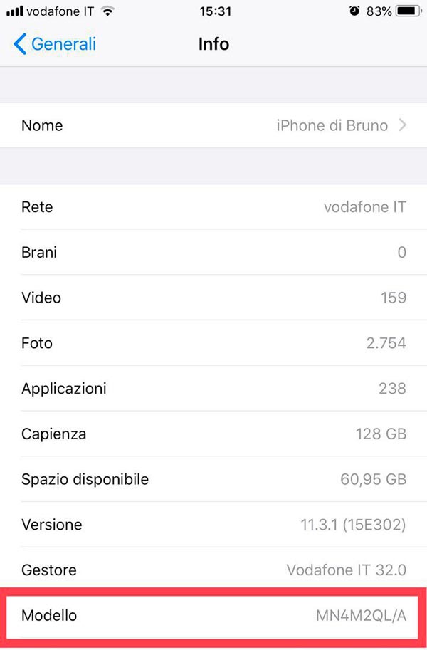 Ecco una guida che vi permetterà di capire se l’iPhone è nuovo oppure, effettivamente, è ricondizionato. Innanzitutto, una volta acceso il dispositivo, dovrete recarvi in “Impostazioni” e poi passare alla sezione “Generali“. A questo punto aprite la voce “Info” e in un batter d’occhio potrete leggere il codice alfanumerico che vi svelerà il modello del vostro iPhone e grazie alla quale potrete capire in quale delle quattro categorie – consultate la tabella a fine notizia – risulta essere collocato il vostro smartphone.