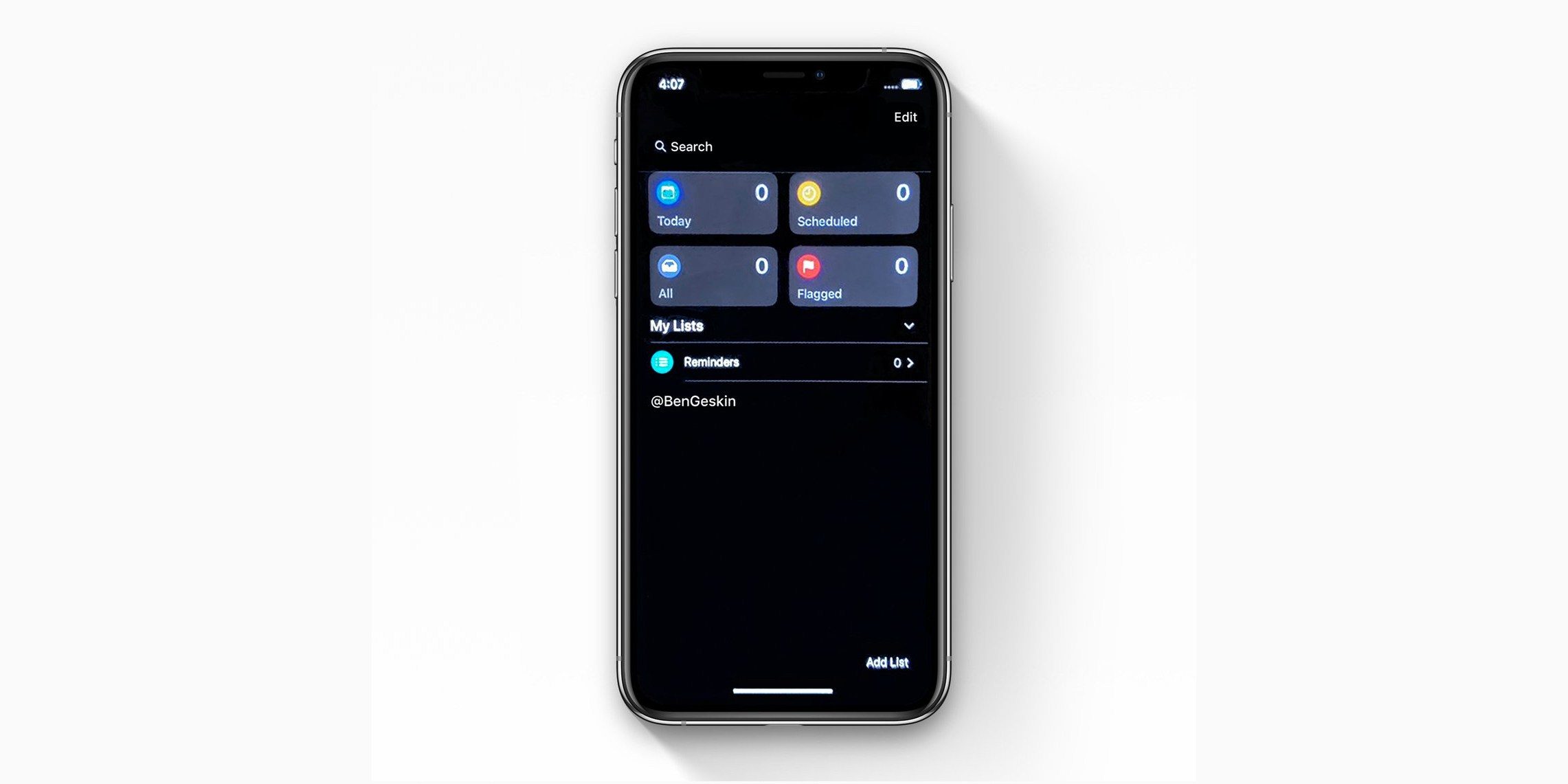 A poche ore dall’evento inaugurale della WWDC 2019 di Apple, in rete è stato caricato uno screenshot relativo alla nuova applicazione Promemoria che verrà pre-installata in iOS 13 e, più nello specifico, alla sua Dark Mode.