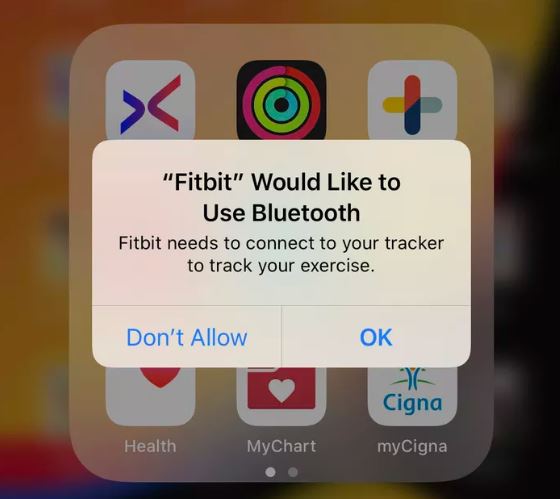 Un messaggio personalizzato ci informa sulle funzioni per cui è necessario attivare la connettività BT: per Fitbit è fondamentale per effettuare il pairing con il fitness tracker indossabile, mentre per Sling TV è richiesta per l’accesso ai dispositivi Cast. Purtroppo, almeno in questa fase iniziale, vedrete spesso il messaggio standard di iOS 13 comparire quando un’app richiede l’accesso al modulo radio.