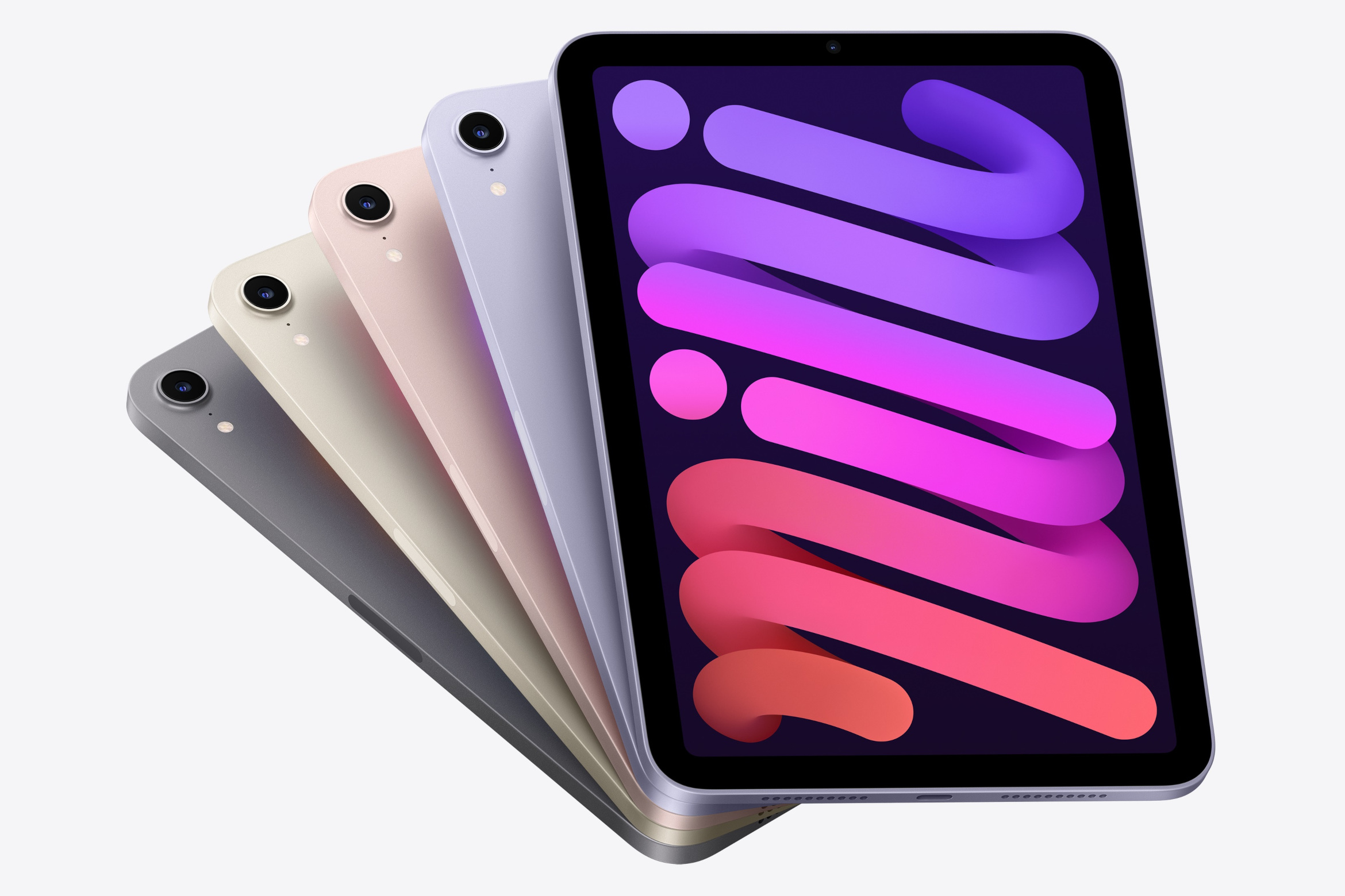 Mette in campo un profondo cambio di rotta rispetto al passato, tanto dal punto di vista del design quanto dal punto di vista qualitativo: prende ora spunto dalla gamma iPad Air e ospita un display Liquid Retina da 8,3” con True Tone e luminosità più spinta. Ospita, inoltre, una fotocamera ultra-grandangolare da 12 megapixel con supporto alla tecnologia Center Stage Mode di Apple, una fotocamera posteriore da 12 megapixel e altoparlanti stereo migliorati. Guadagna la porta USB-C ed è compatibile con la Apple Pencil di seconda generazione. - iPad mini (settima generazione) – 2024