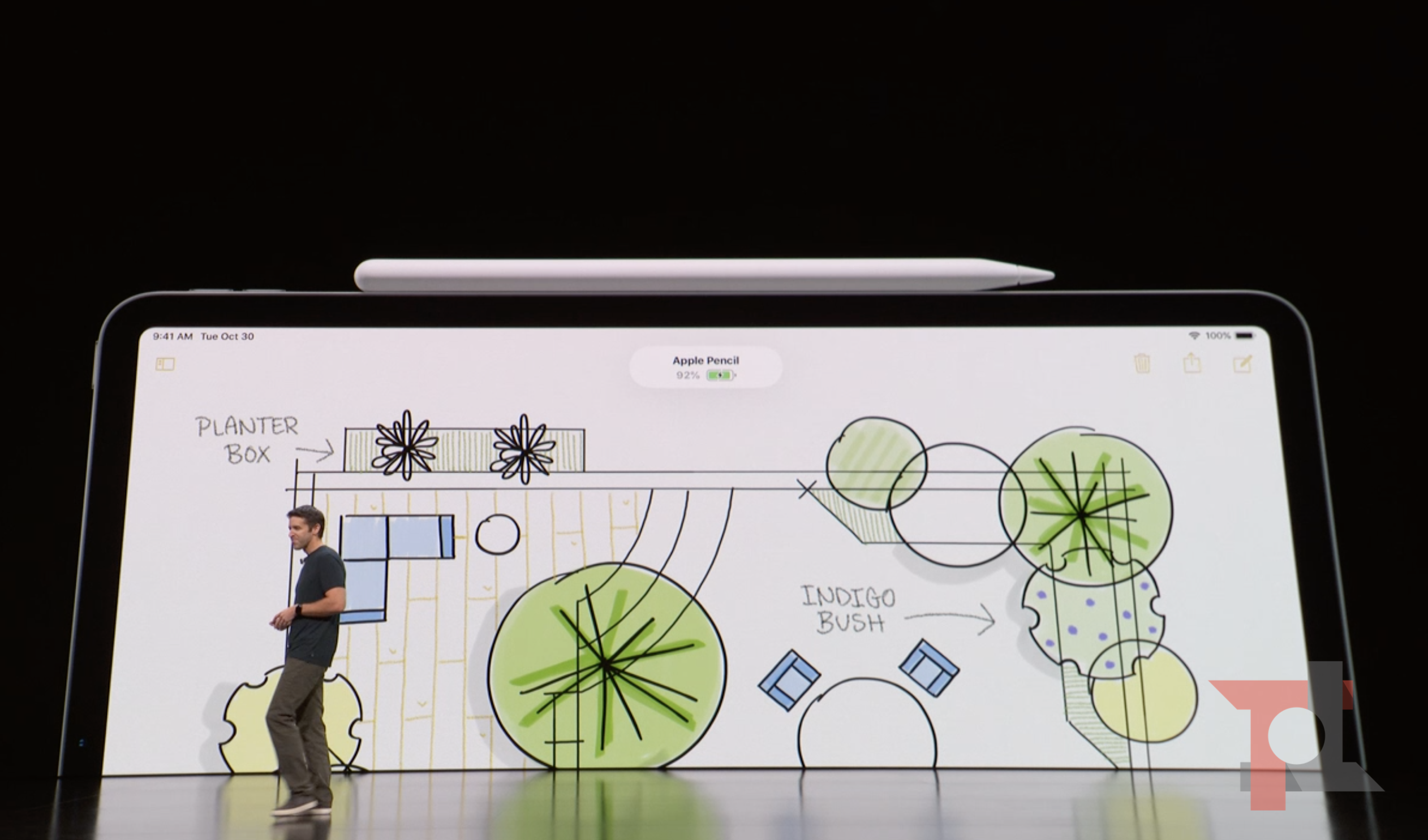 Troviamo poi l’introduzione del SoC di nuova generazione A12X Bionic, la cui architettura è simile a quello dei nuovi iPhone Xs, Xs Max e iPhone XR tranne che per la presenza di 10 miliardi di transistor, una CPU octa core del 35% più potente rispetto al chip A11X (Apple indica che è il 92% più veloce dei notebook venduti nel 2018), una GPU a 7 core (1000 volte più potente del primo iPad e 2 volte rispetto a quella della precedente generazione).