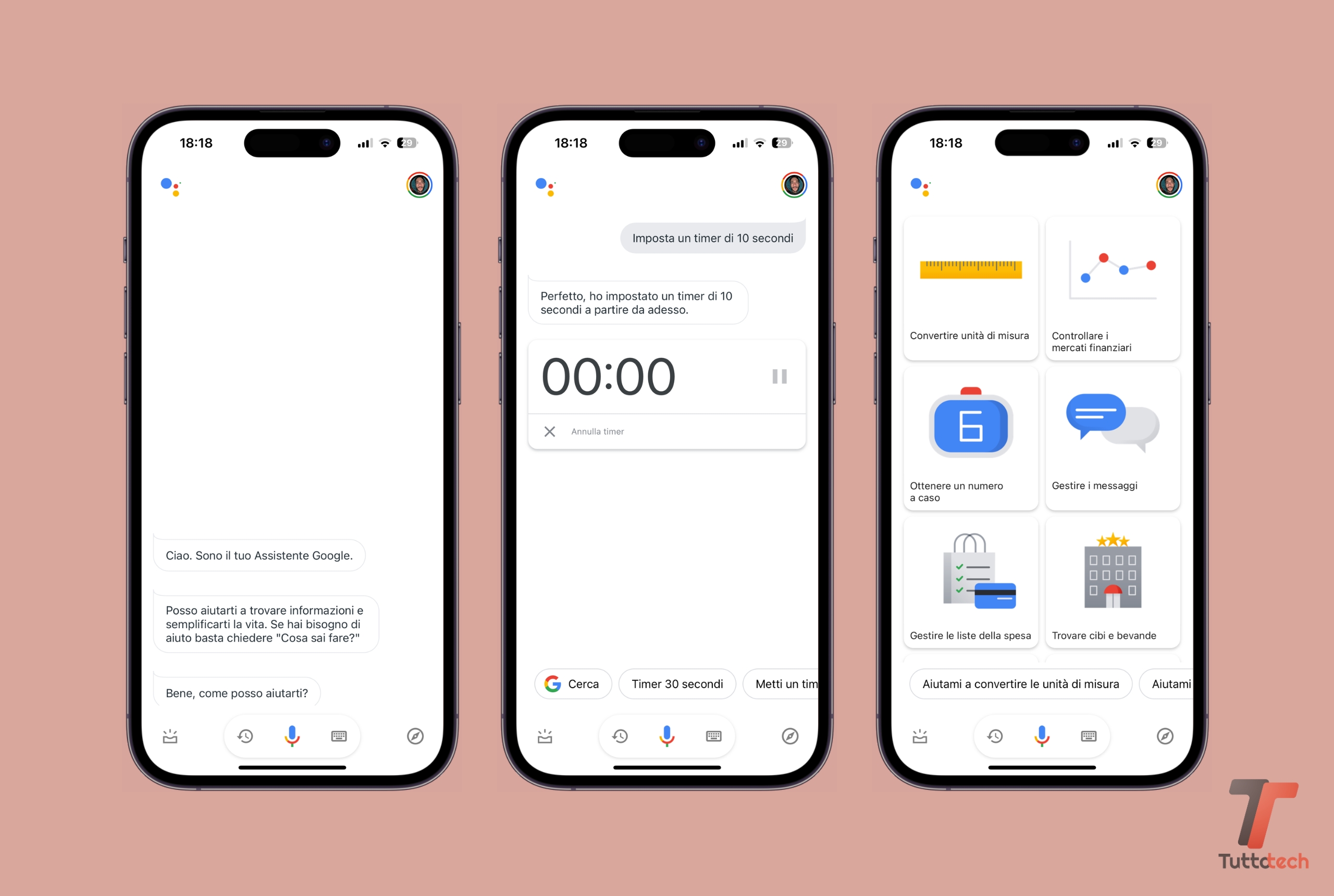 In generale si tratta, in tutto e per tutto, di un assistente digitale che cercherà di soddisfare le richieste, poste tramite voce (effettuando un tap sull’icona del microfono) o tramite testo (effettuando un tap sull’icona della tastiera) dall’utente, affidandosi a ricerche sul web o a banali comandi (come l’attivazione di un timer).