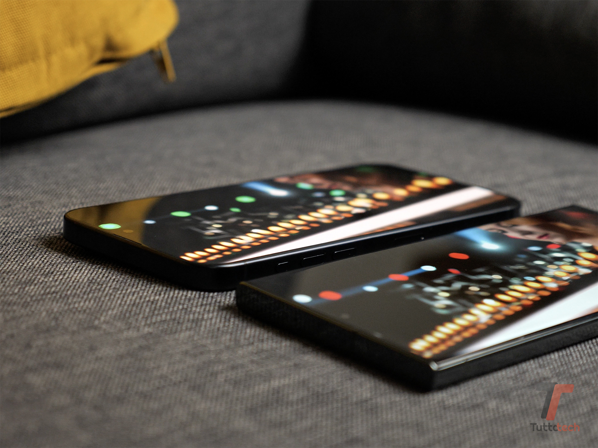 Come dicevamo la principale novità “estetica” è rappresentata dal peso: 220 grammi sono ancora una cifra importante ma su uno smartphone così grande non si fanno sentire molto, soprattutto se paragonati ai 241 grammi di iPhone 14 Pro Max che diventavano praticamente inaccettabili una volta aggiunta una cover protettiva. Parte del motivo di questo alleggerimento è da imputare al cambio di materiale del frame passando dall’acciaio inossidabile all’alluminio con un rivestimento in titanio. I bordi non sono più lucidi dunque ma satinati e anche questo aiuta a migliorare l’ergonomia.