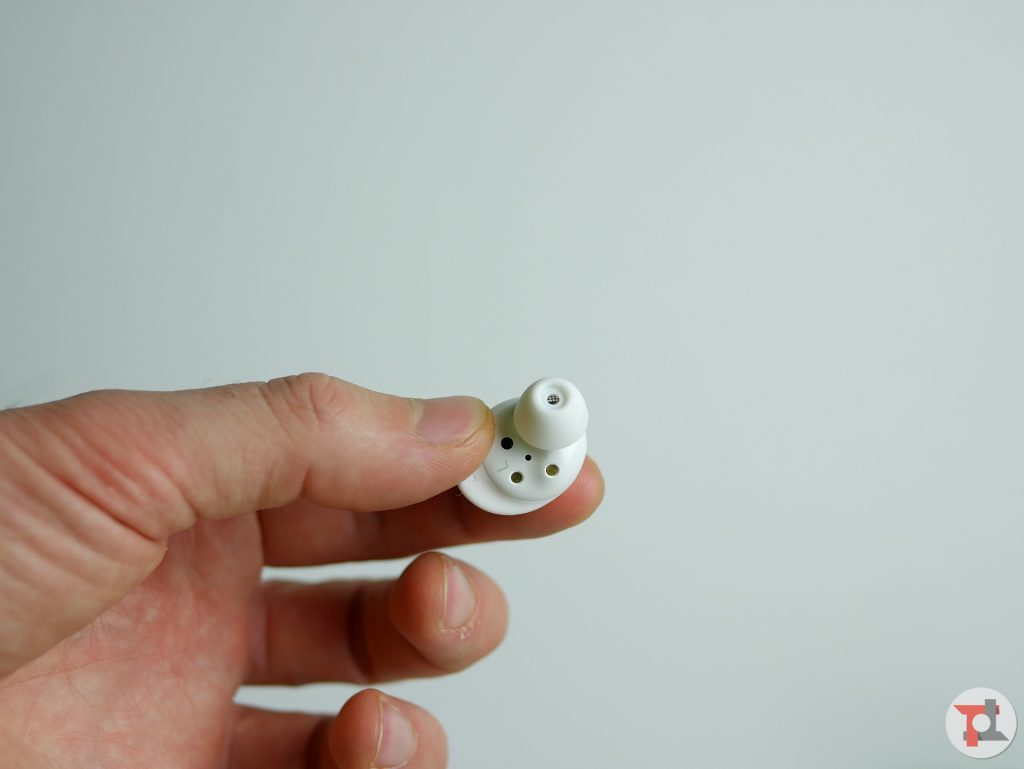 In ogni driver trovano posto un accelerometro, un sensore di prossimità, un sensore di campo magnetico, un’area tattile e una batteria da 58 mAh. E’ presente un microfono esterno per la cattura dell’audio ambientale e un microfono interno che cattura la nostra voce dalle vibrazioni del condotto uditivo (una soluzione fantastica per avere un buon audio catturato in ambienti rumorosi), nella parte interna trovano posto anche due pin di ricarica che si accoppieranno ai rispettivi contatti all’interno del case.