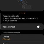 Le Samsung Galaxy Buds hanno alcune gesture già preimpostate: con un tocco breve funzione play/pausa, con doppio tocco brano successivo oppure rispondi/termina chiamata, triplo tocco per brano precedente, tocco prolungato rifiuta chiamata o funzione personalizzata dall’utente. Per il tocco prolungato potrete scegliere tra attivazione dell’ assistente vocale, attivazione del suono ambientale oppure volume su/volume giù.