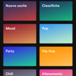 Nella sezione Home è possibile trovare tutte le playlist preparate per noi da Spotify stessa, così come gli artisti più in voga del momento e gli album più ascoltati di recente. Il tab della ricerca è stato del tutto rivisto graficamente con una serie di rettangoli colorati che permettono di restringere la ricerca.