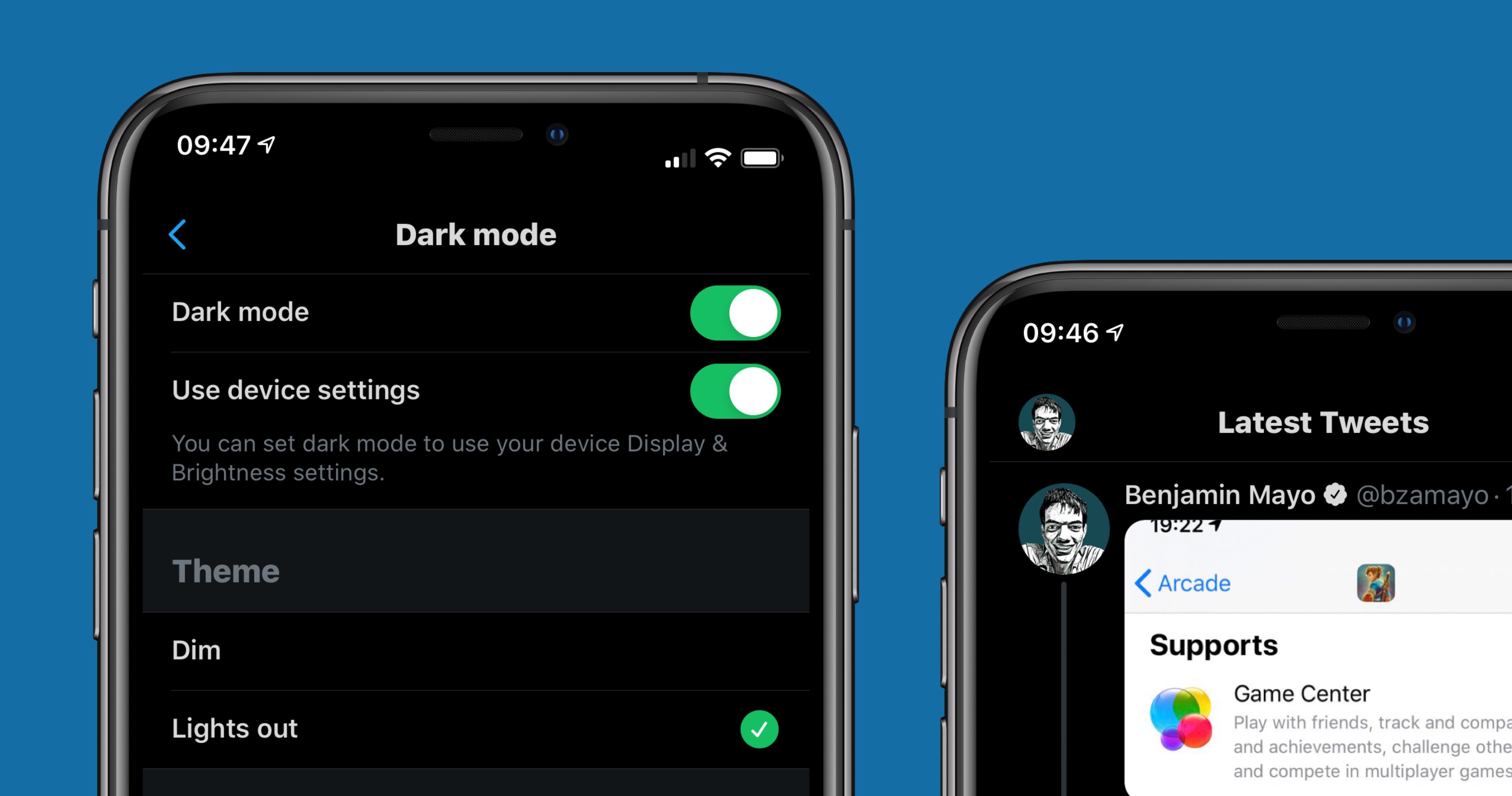 Nel mentre siete in queste impostazioni, potete personalizzare ulteriormente il tema dell’app Twitter, scegliendo fra un tema scuro al 100% (ideale per chi ha un iPhone con display OLED) oppure un tema scuro dai toni un po’ più bluastri.