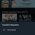 Di contro, con l’ultima versione dell’app Amazon Prime Video per Android e iOS è adesso possibile accedere all’icona di Chromecast che permette di indicare al dongle di Google di riprodurre i contenuti di Prime Video.