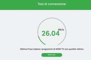 Purtroppo NOW TV non comunica in maniera specifica quale sia la banda internet necessaria per poter usufruire del servizio. Mette comunque a disposizione un test della velocità internet interno per comunicarti se la tua connessione è sufficiente per godere al massimo dei contenuti proposti.