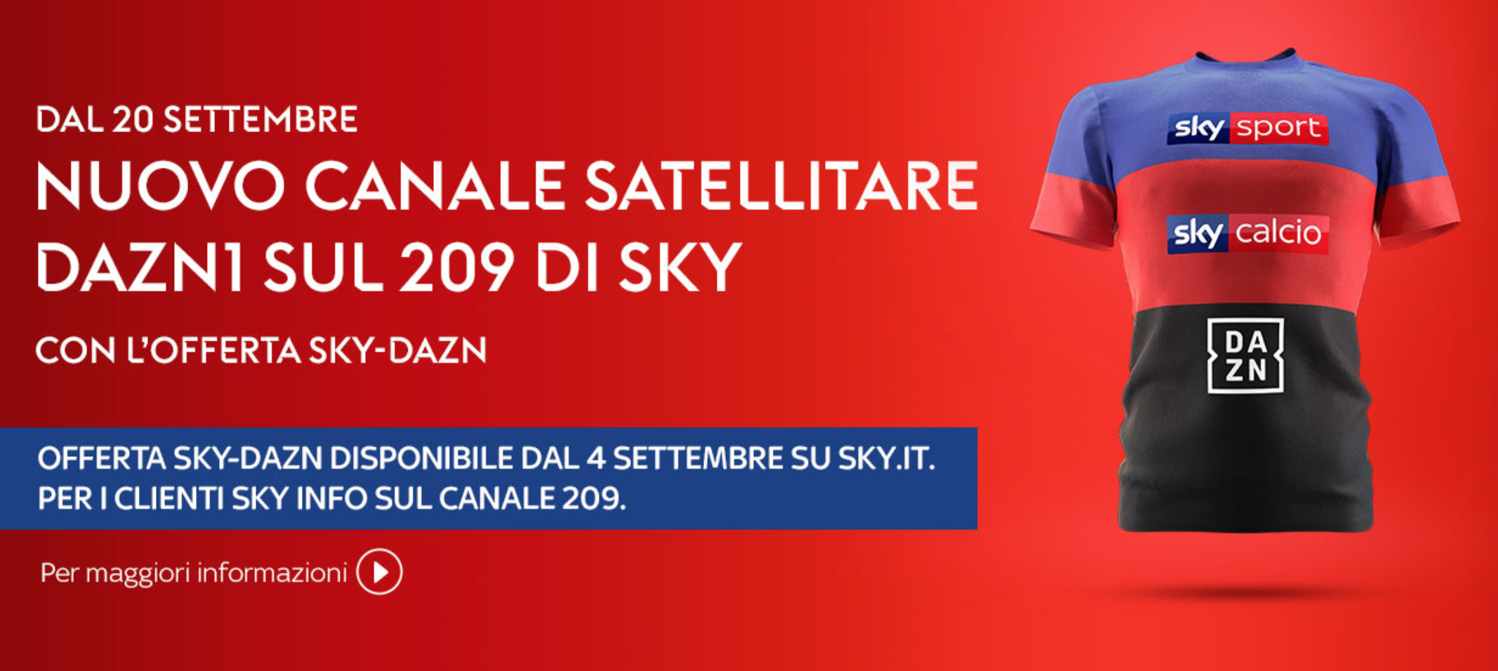 Per attivare l’offerta che mette a disposizione il canale DAZN1, dal 4 settembre è possibile recarsi nell’area fai-da-te del sito web di Sky.it ed attivarla.
