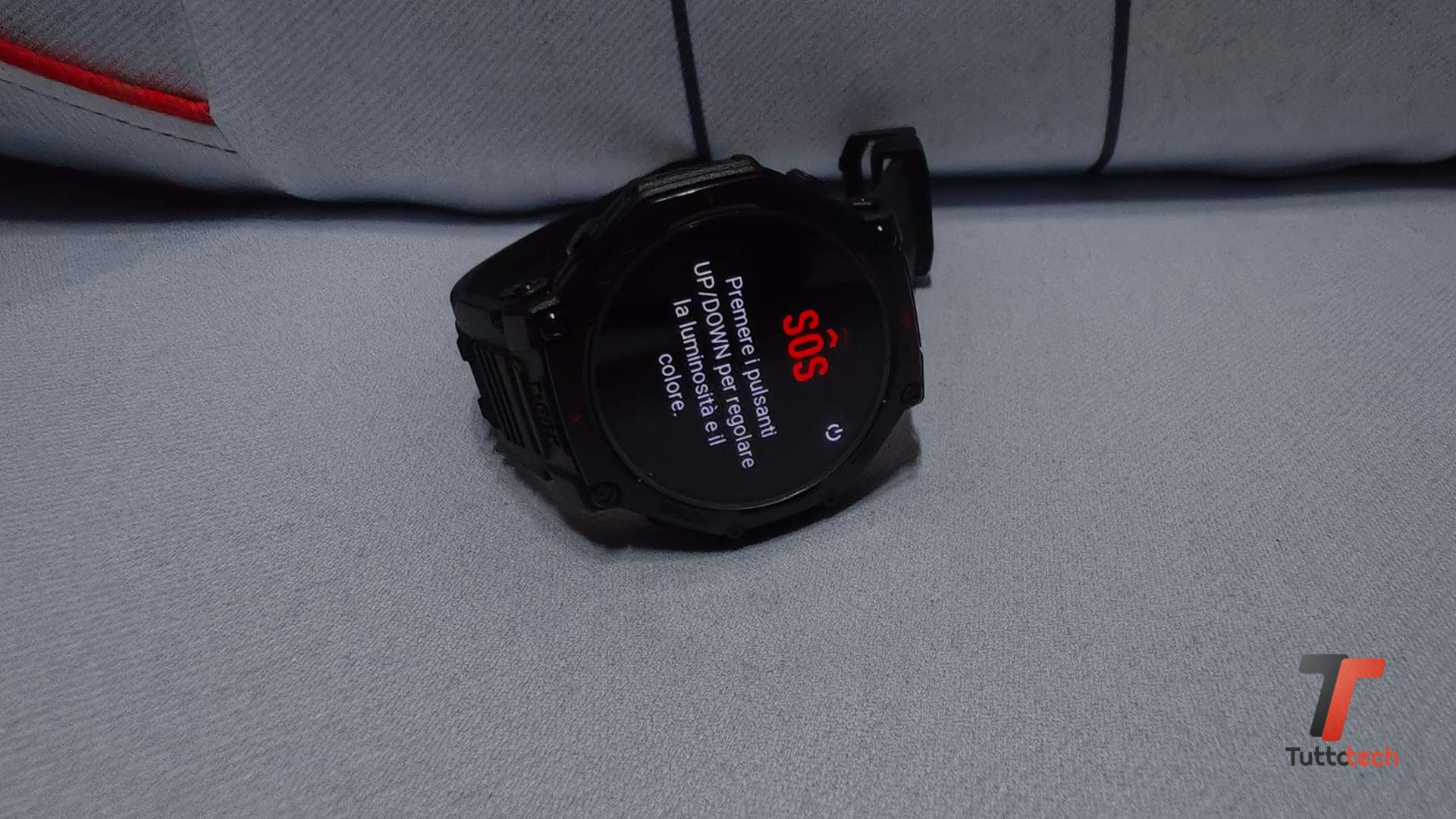 È inoltre presente una modalità SOS, attivabile attraverso l’apposita icona presente nel menu a tendina, che fa lampeggiare il LED e offre la possibilità di regolare intensità e colore con i pulsanti posti sul lato sinistro. Una soluzione molto utile se avete bisogno di aiuto perché magari siete caduti, ma anche per attirare l’attenzione in modo silenzioso.