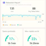 Se viceversa volete un ambiente il più silenzioso possibile, allora potreste notare un tempo più lungo per addormentarvi, anche se nel mio caso tale tempo si è progressivamente ridotto nel tempo, segno che la mente riesce ad abituarsi con facilità alla situazione e a trarne i dovuti benefici. Al risveglio è possibile osservare il report sul rilassamento, che mostra l’andamento dell’indice nel tempo, rilevando le fasi in cui l’attività è stata più intensa.