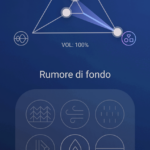Questa parte permette di spostare un cerchio sulle varie icone scegliendo un singolo suono o un mix che può comprendere fino a quattro suoni adiacenti, così da trovare quello che rilassa maggiormente. È possibile inoltre, dalle impostazioni di Aura ma anche sullo schermo dello smartwatch abbinato, conoscer l’indice di relax in tempo reale: più il valore si avvicina a 100 più lo stato di relax è migliore.