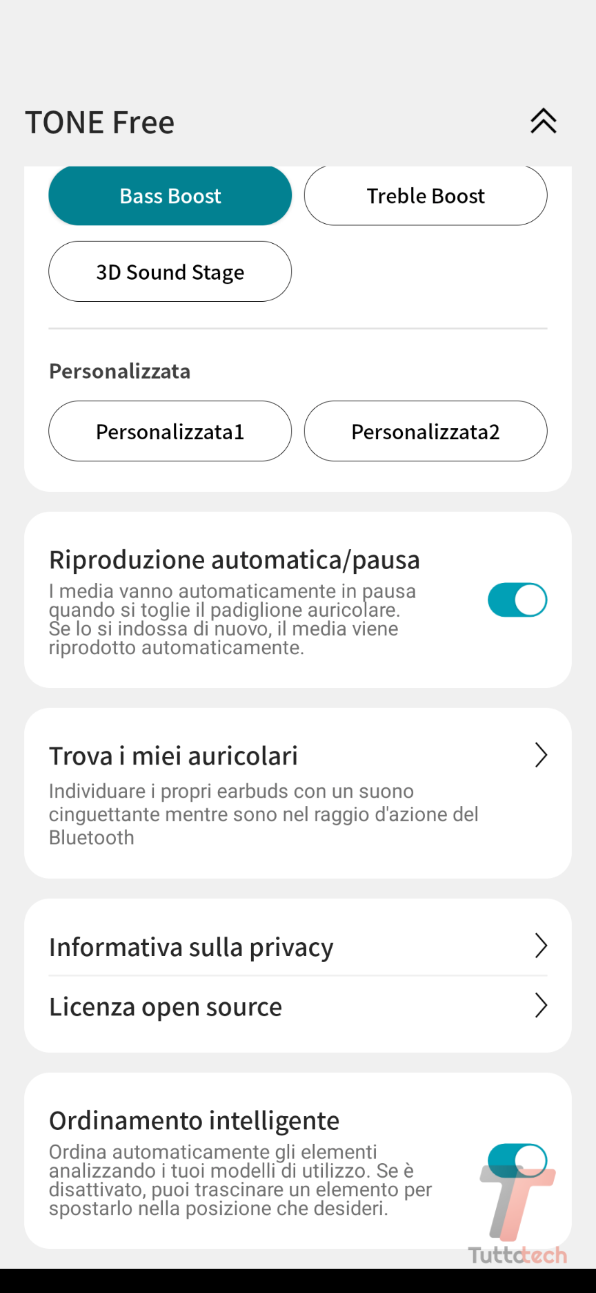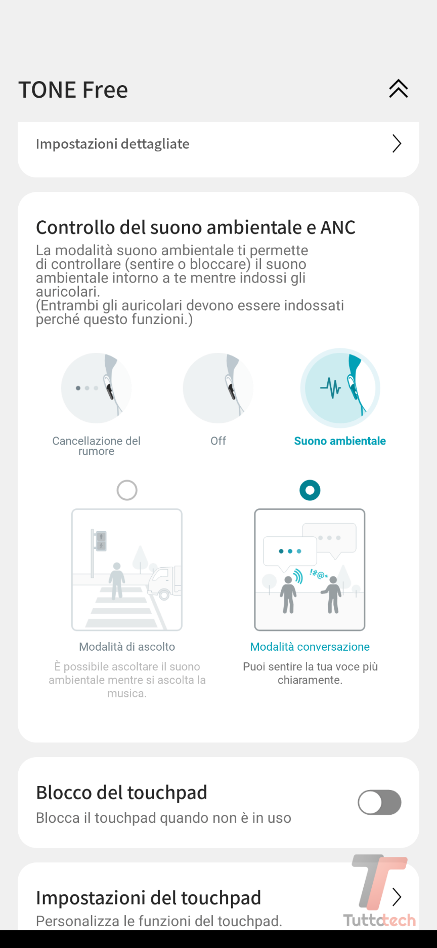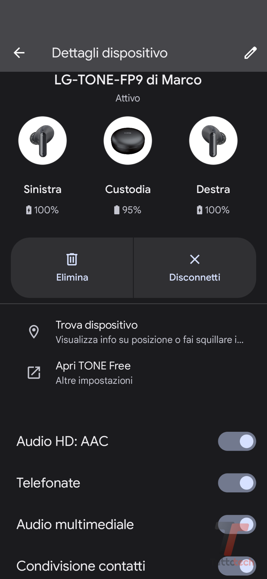 Delle cuffie di fascia alta che si rispettino però devono necessariamente essere accompagnate da un buon software e da una buona applicazione e così è per le LG TONE Free FP9. Le stiamo usando da un mesetto e non c’è stato un problema, non c’è stato un bug e non c’è stato mai un intoppo di alcun genere finora: sono sempre pronte, reattive, stabili e affidabili, in ogni condizione. Il loro punto di forza sotto questo profilo però è la quantità di funzioni smart di cui sono dotate e che possono essere impostate dall’applicazione: è possibile visualizzare la carica residua dei due auricolari e del case, attivare, disattivare e impostare la lettura dei messaggi e delle notifiche, gestire l’ANC e il suono ambientale, attivare il blocco del touchpad quando non è in uso, gestire l’equalizzazione, attivare e disattivare le funzioni sperimentali in fase di test, attivare, disattivare e impostare le azioni sui touchpad, aggiornare il firmware, attivare e disattivare il play-stop quando le si indossano o si rimuovono sfruttando i due sensori di prossimità, far squillare i due auricolari e leggere il manuale utente; insomma, c’è tutto ciò che serve all’interno di un’applicazione semplice, veloce, bella graficamente e sempre al passo coi tempi, seppur non sia perfetta perché contiene qualche traduzione in italiano poco precisa e che andrebbe rivista.