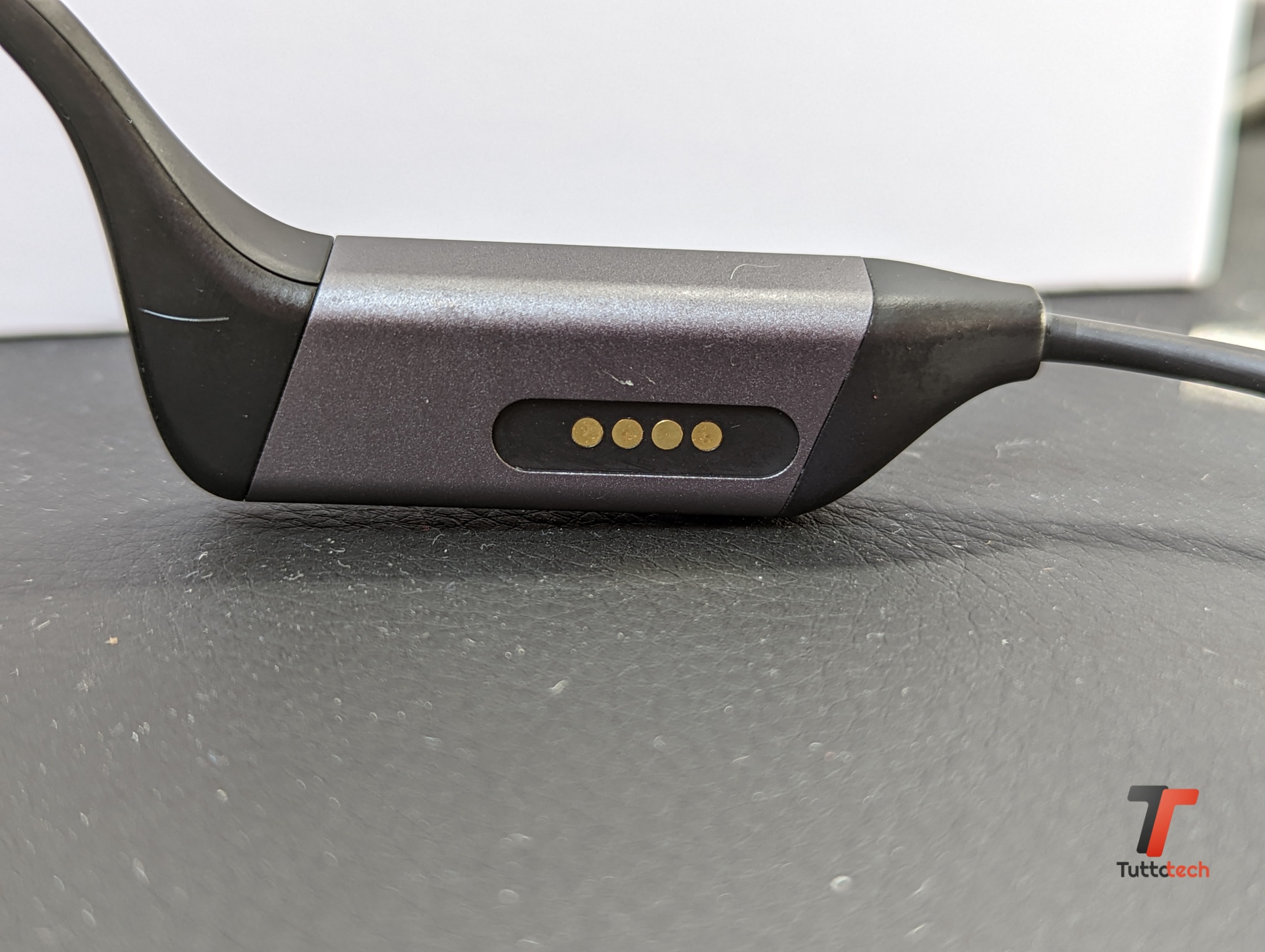 La ricarica avviene con un connettore magnetico proprietario, quindi bisogna fare attenzione a non perdere il cavetto di ricarica pena l’impossibilità di utilizzare le cuffie una volta scariche. Il cavetto viene utilizzato anche per il trasferimento dei dati da un computer alla memoria interna, con una velocità abbastanza bassa: per trasferire circa 1,5 GB di musica ci sono voluti oltre 30 minuti. Niente di particolarmente grave, visto che non è un’operazione da effettuare tutti i giorni, ma se avete intenzione di riempire tutta la memoria interna mettete in conto parecchie ore per l’operazione.