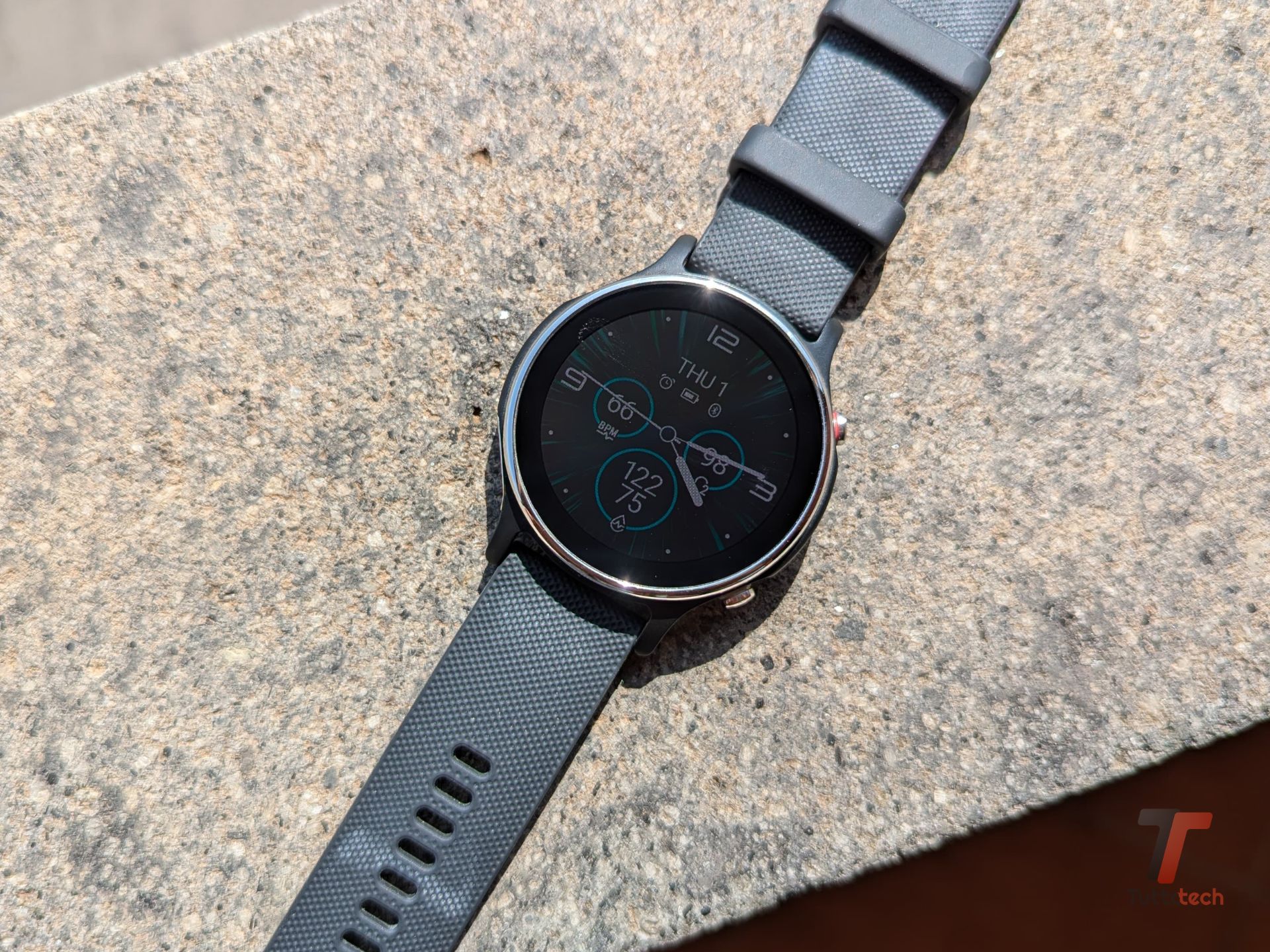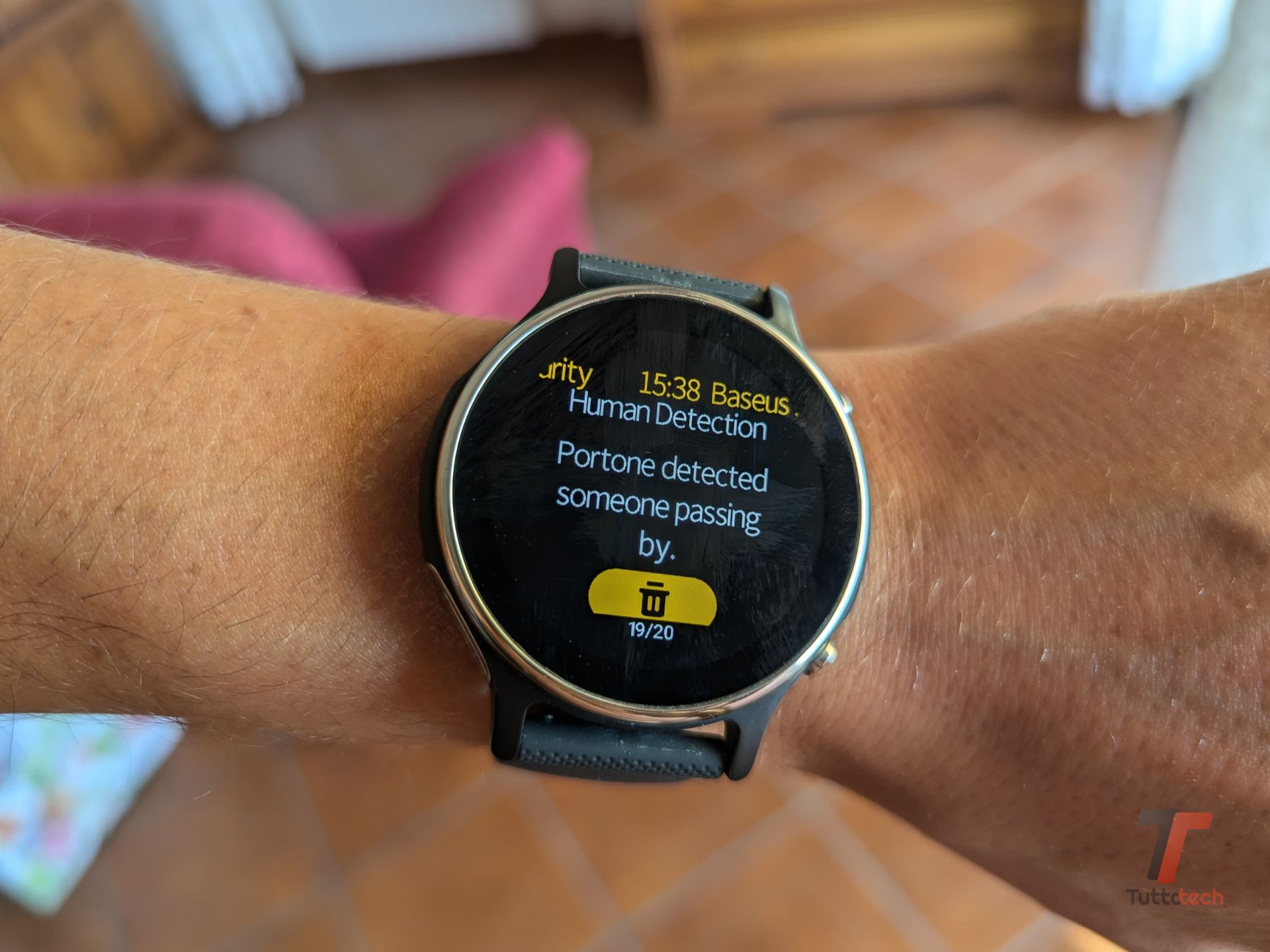 Sul fronte delle funzioni smart, mostra le informazioni meteorologiche, le notifiche dello smartphone (pur con alcune limitazioni: non è possibile rispondere, se ne leggono poche parole e non si vedono né le immagini né le emoticon) e ha l’opzione per controllare la riproduzione musicale (volume e cambio traccia). C’è anche lo strumento per ritrovare il telefono connesso (se si trova nei paraggi lo fa suonare e attiva il flash), la scorciatoia per scattare fotografie, oltre a sveglia, timer, cronometro e poco altro.