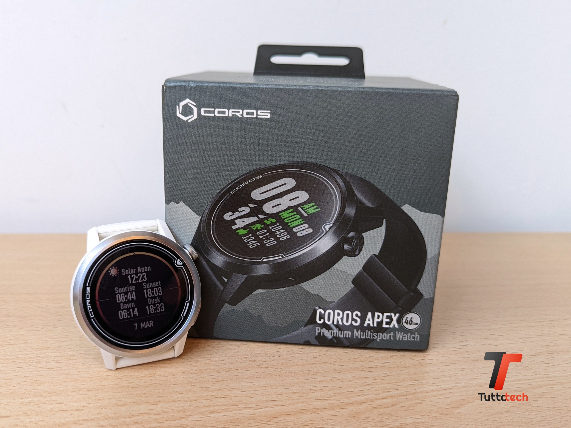 Ho dunque voluto toccare con mano la qualità di questi prodotti e oggi vi parlo di COROS APEX, nella versione con cassa da 46 millimetri, uno sportwatch di fascia media che punta a contrastare il dominio di Garmin e Polar in questo mercato. L’ho tenuto al polso per quasi un mese, durante il quale l’ho utilizzato 24 ore su 24, giorno e notte, e ovviamente nei miei allenamenti (corsa e ciclismo): oggi vi racconto come si è comportato in questa prova, con pro e contro.