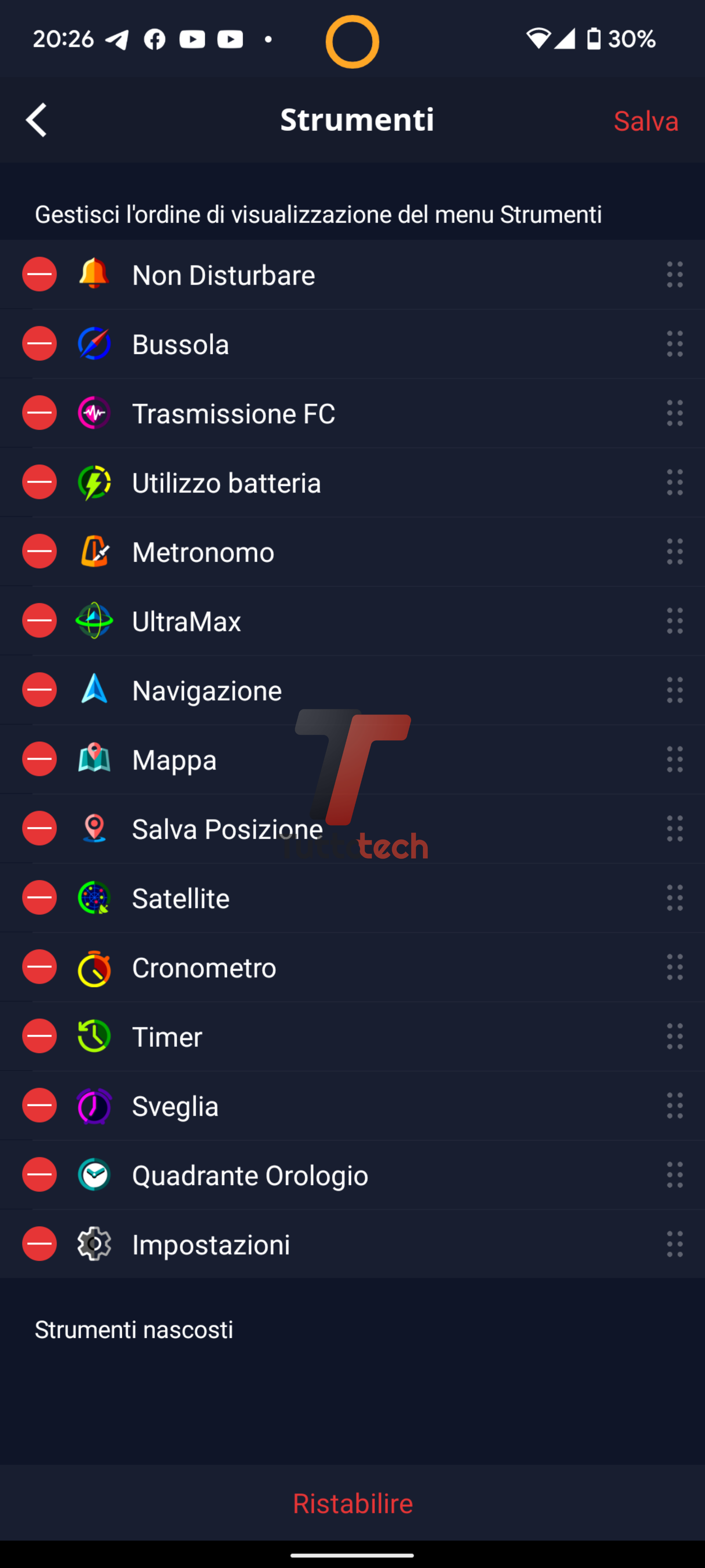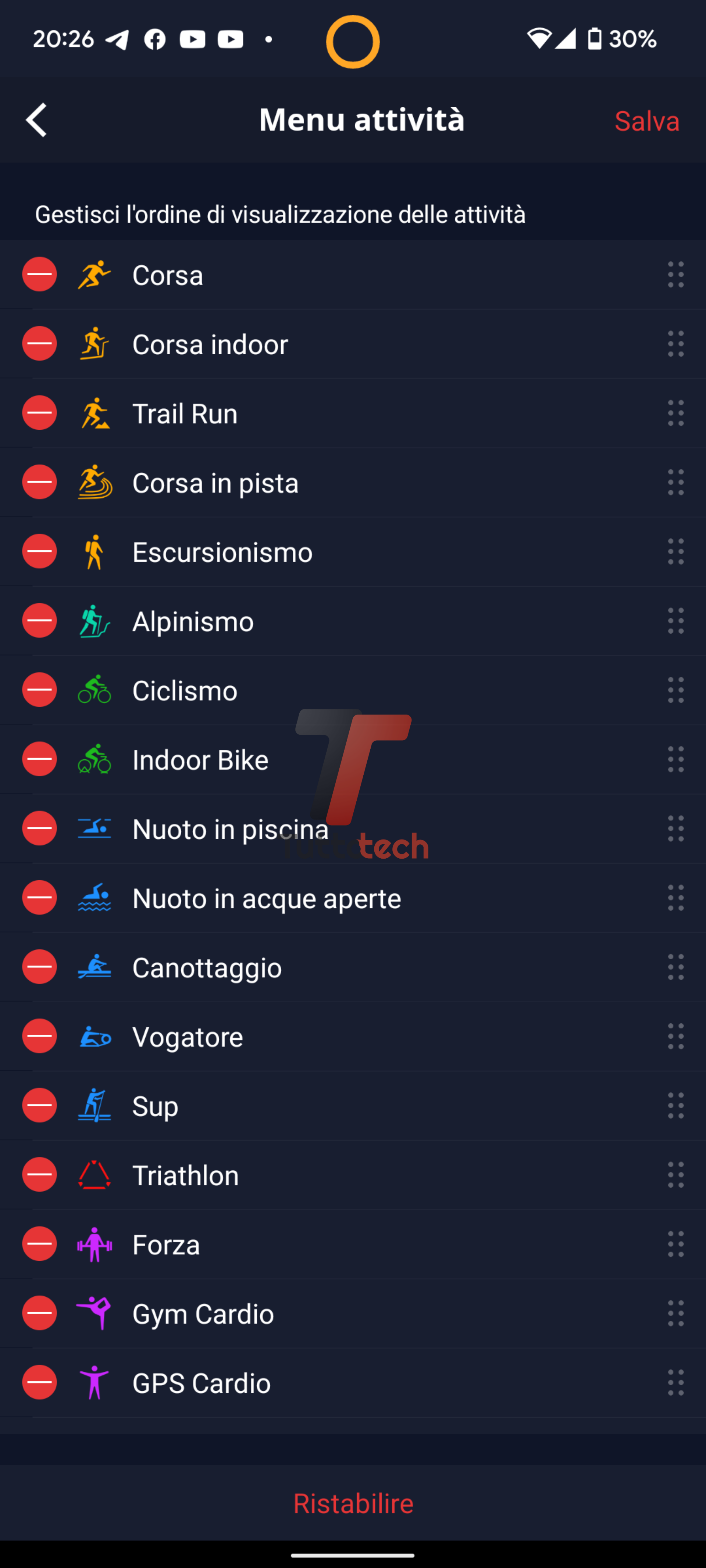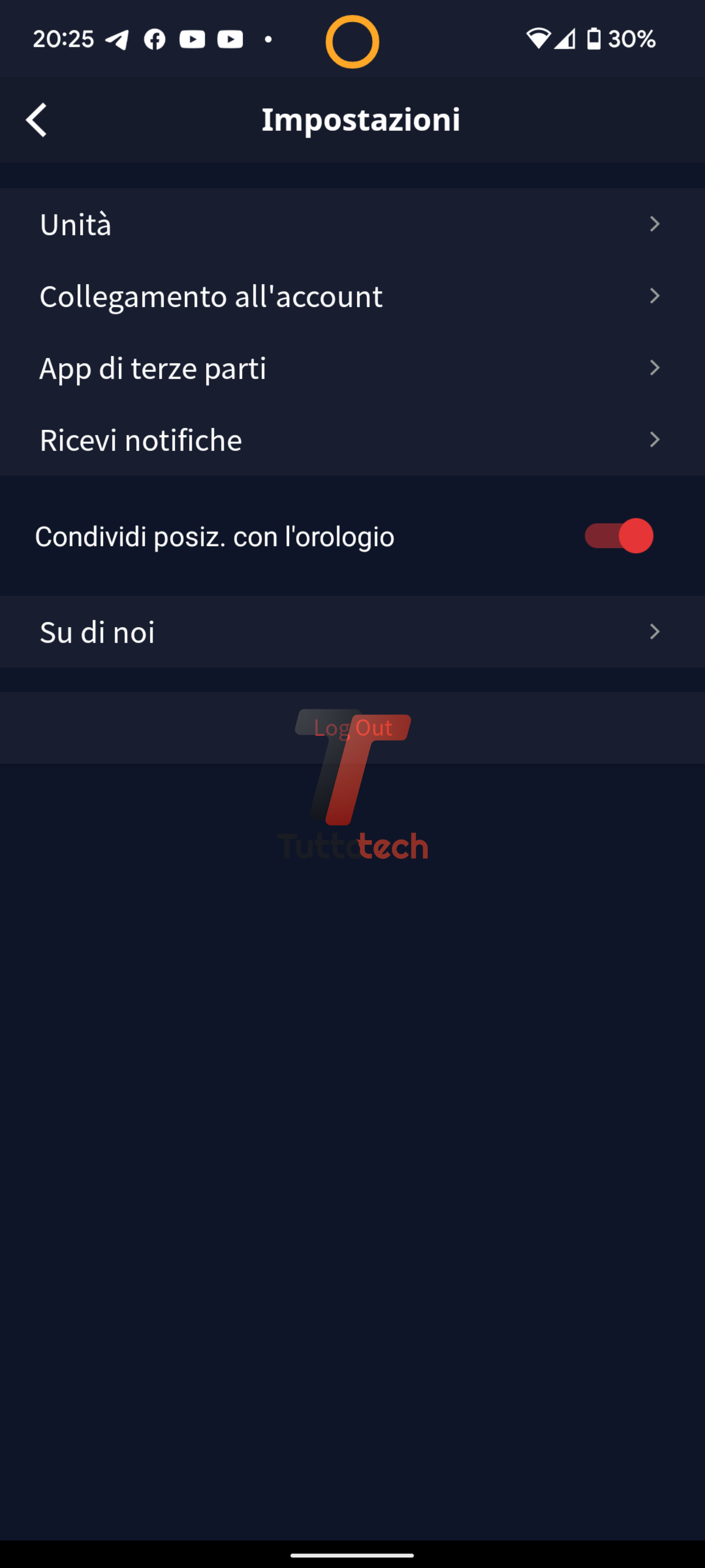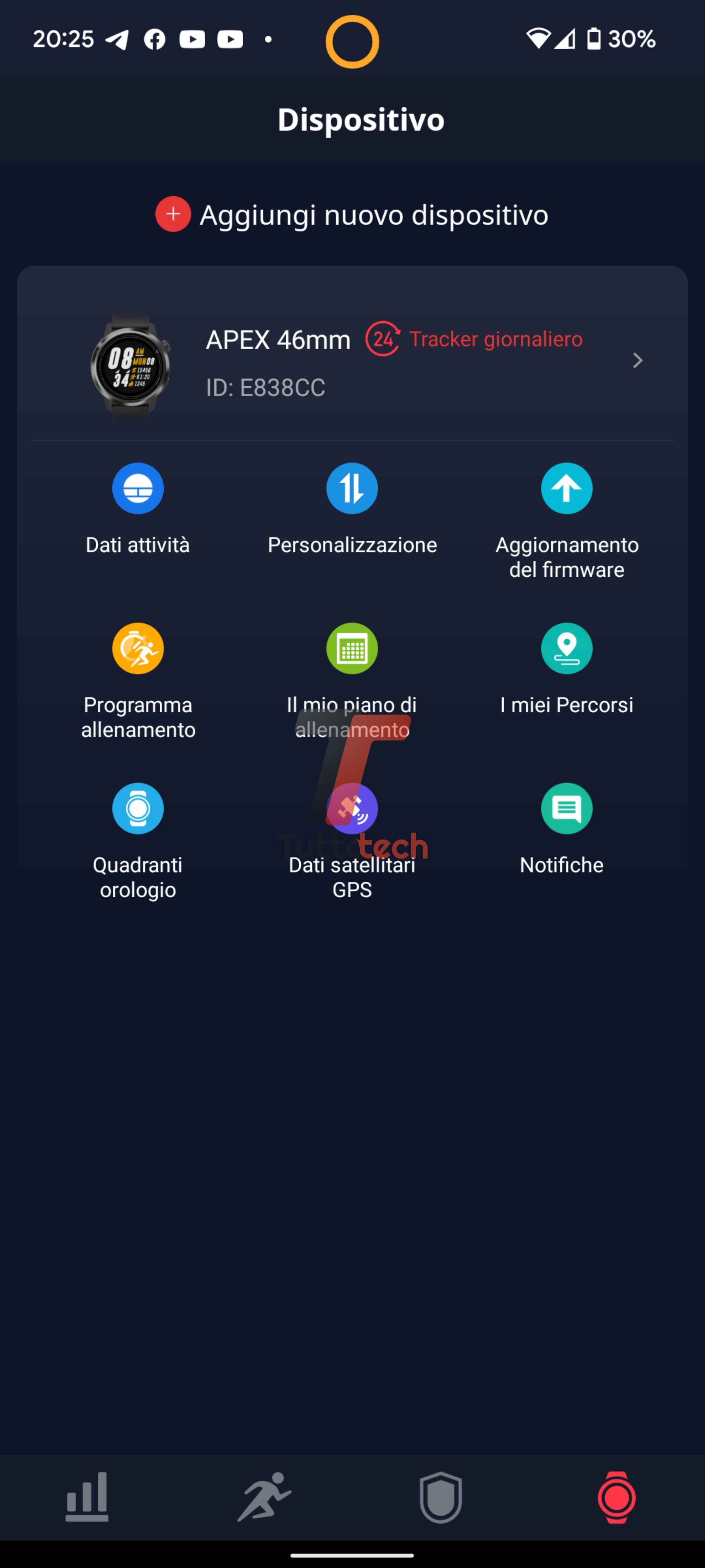 L’ultima scheda invece è dedicata all’orologio collegato, per gestire i quadranti della attività, il quadrante principale, gli aggiornamenti, i file (allenamenti, percorsi) caricati sul dispositivo, l’aggiornamento dei dati satellitari e la gestione delle notifiche.