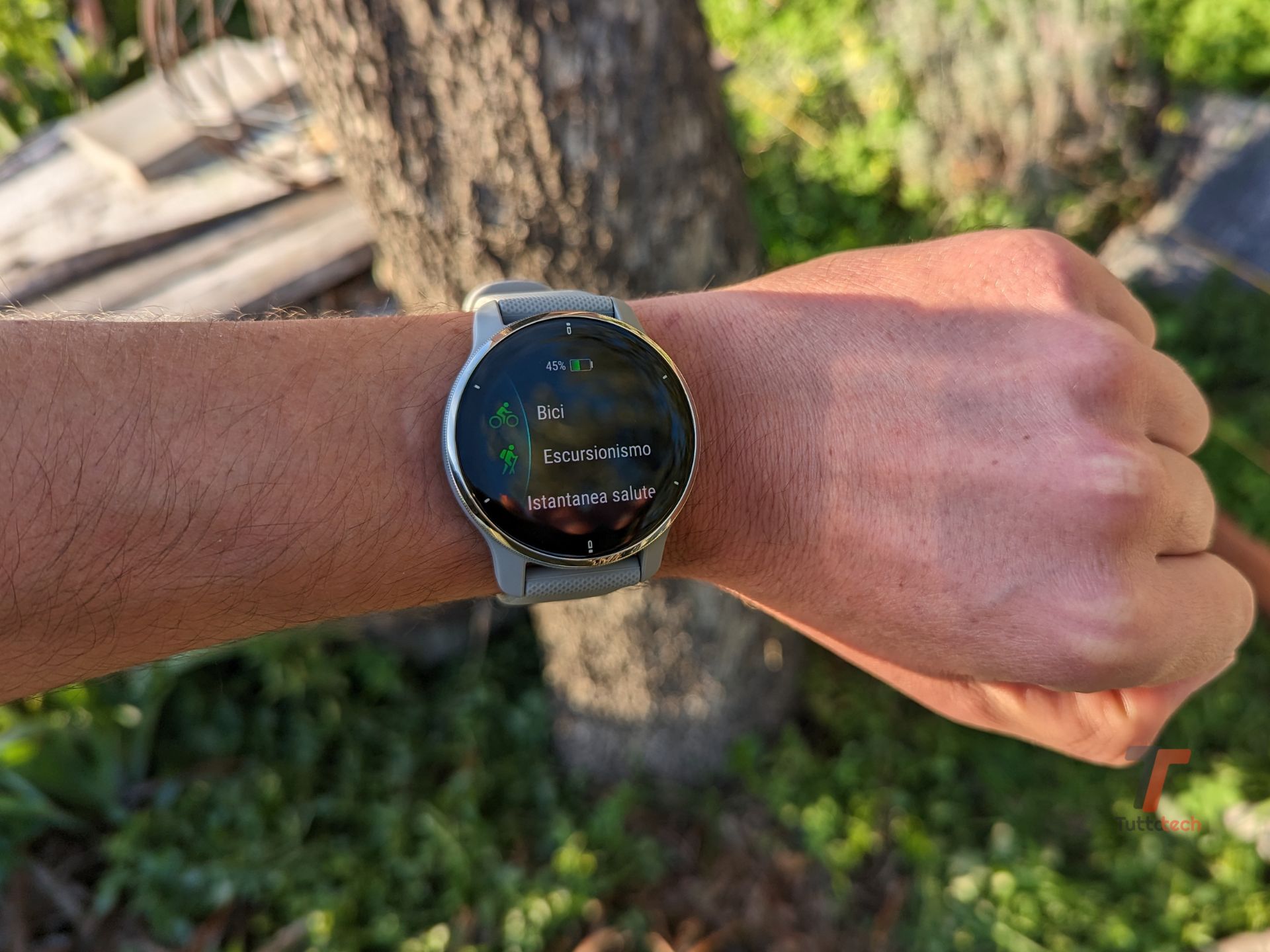 Credetemi, la differenza al polso si sente, specie con giacche, felpe e abiti ingombranti a maniche lunghe, e chiaramente durante il sonno. Lato comfort, avendo un polso minuto, è logico preferisca il più piccino, Venu 2 Plus, che spesso ci si dimentica quasi di averlo.