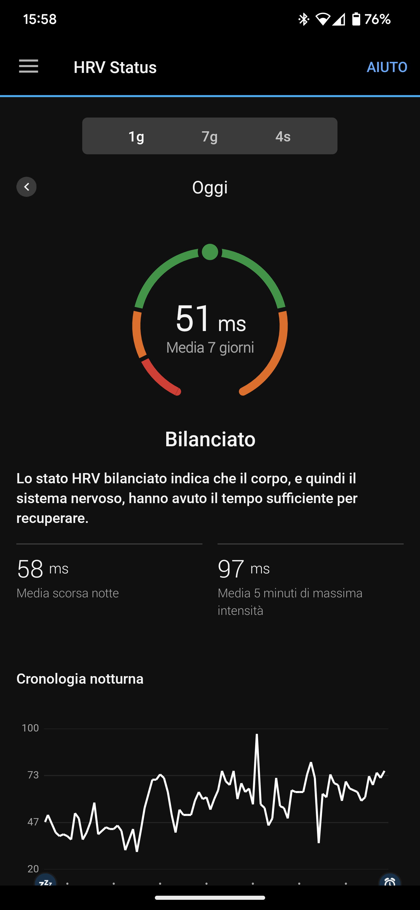 Comunque, senza mettere troppo da parte i tecnicismi, il valore aggiunto del Forerunner 955 è che restituisce all’utente una notevole serie di metriche e dati che permettono di gestire in tempo reale e di analizzare ad allenamento terminato la propria sessione, questione che personalmente apprezzo moltissimo. Fra le figate segnalo la funzione Stamina in tempo reale (che in base ai propri parametri, allo storico degli allenamenti e alla propria soglia anaerobica, fornisce delle percentuali utili per gestire lo sforzo durante la corsa o il ciclismo, qui per maggiori dettagli), ClimbPro che permette di avere una panoramica ben dettagliata delle salite in programma in un allenamento (funziona quando si sta seguendo un percorso caricato) e HRV Status, una novità molto interessante che dà una panoramica olistica del proprio stato di forma, andando ad analizzare in primo luogo la variabilità della frequenza cardiaca (metrica sempre più considerata negli ultimi anni per comprendere la risposta del fisico di una persona agli stimoli interni ed esterni), registrata durante la notte e specchiata poi col proprio storico degli allenamenti; ne risulta un punteggio il cui ideale si trova nel mezzo, nel punteggio “bilanciato” rispetto al proprio intervallo di riferimento.