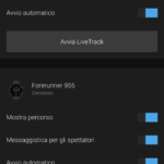 Un’altra funzione molto utile è il LiveTrack, che su Forerunner 955 è più completo (in più permette di mostrare il percorso e la funzione di messaggistica per gli spettatori). Praticamente consente ai contatti impostati di seguire gli spostamenti in tempo reale dell’utente, un’utilità specie per chi si allena in solitaria in montagna, o in luoghi remoti. In caso di problemi, il Forerunner riserva tuttavia una scorciatoia con la quale, tenendo premuto il pulsante “Light” per 3 secondi invia automaticamente una richiesta d’aiuto ai propri contatti. Chiaro, per tutto questo serve una connessione Bluetooth e la copertura della rete cellulare.