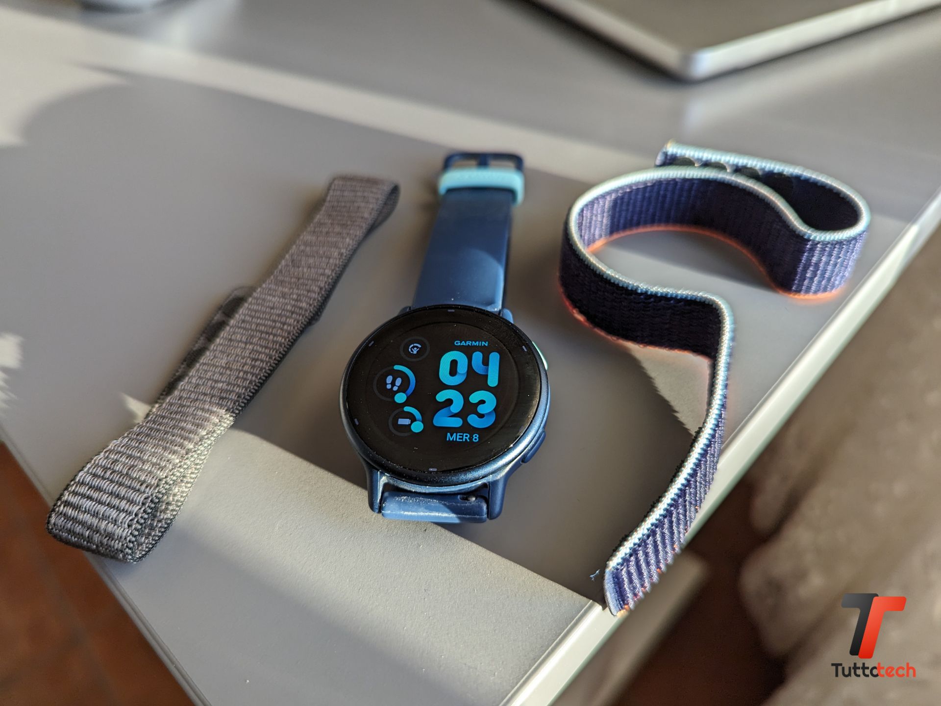 È un orologio comodo da indossare, non dà fastidio nemmeno di notte o in periodi come questi, in cui camicie, giacconi, felpe e maglie a maniche lunghe sono di nuovo indispensabili, capi d’abbigliamento che non vanno molto d’accordo con gli orologi di grandi dimensioni. Peccato per il cinturino in silicone che, a nostro avviso, risulta un po’ troppo rigido, anche rispetto ad altri smartwatch e sportwatch Garmin provati, problema tuttavia risolvibile considerando che se ne possono montare altri (originali e non, ma con passo da 20 mm), come i due in velcro che abbiamo provato e che potete acquistare su Amazon da qui.