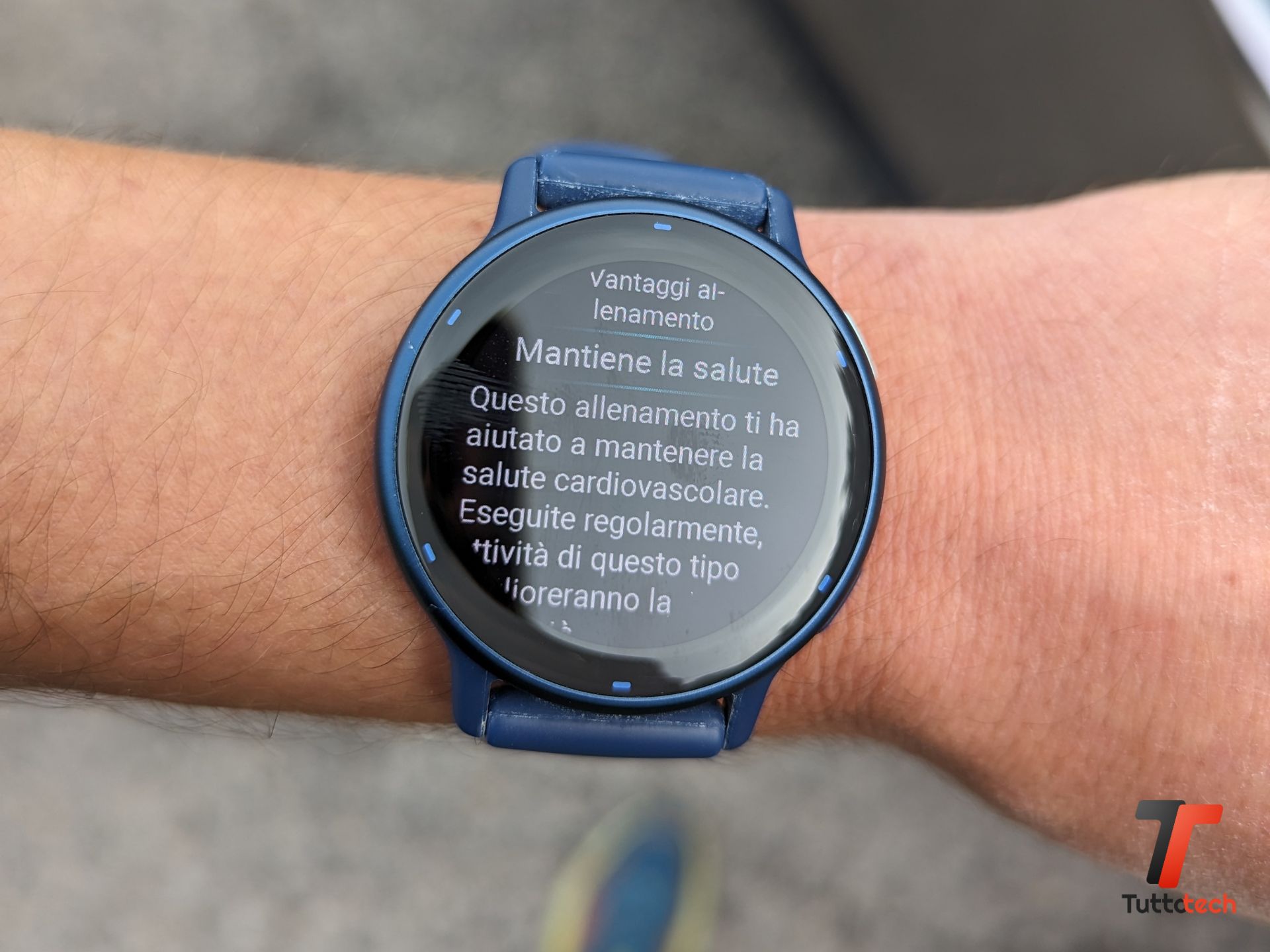 Ci sono poi alcune funzioni professionali, come ad esempio la stima del VO2 Max, utile soprattutto per fissare degli obiettivi e per valutare le variazioni della propria forma fisica, lo sforzo percepito con cui registrare manualmente il livello di sforzo delle attività eseguite, la possibilità di tenere traccia dei minuti di intensità, perfino i benefici dell’allenamento (aerobico o anaerobico, ad esempio) e la stima dei tempi di recupero, che si vanno a sommare con le attività registrate con altri dispositivi (ad esempio con un ciclocomputer). Mancano chiaramente tante altre chicche, riservate giustamente agli sportwatch veri e propri, che possono registrare tanti altri parametri più specifici e utili per chi cerca un dispositivo con cui allenarsi con maggior precisione.