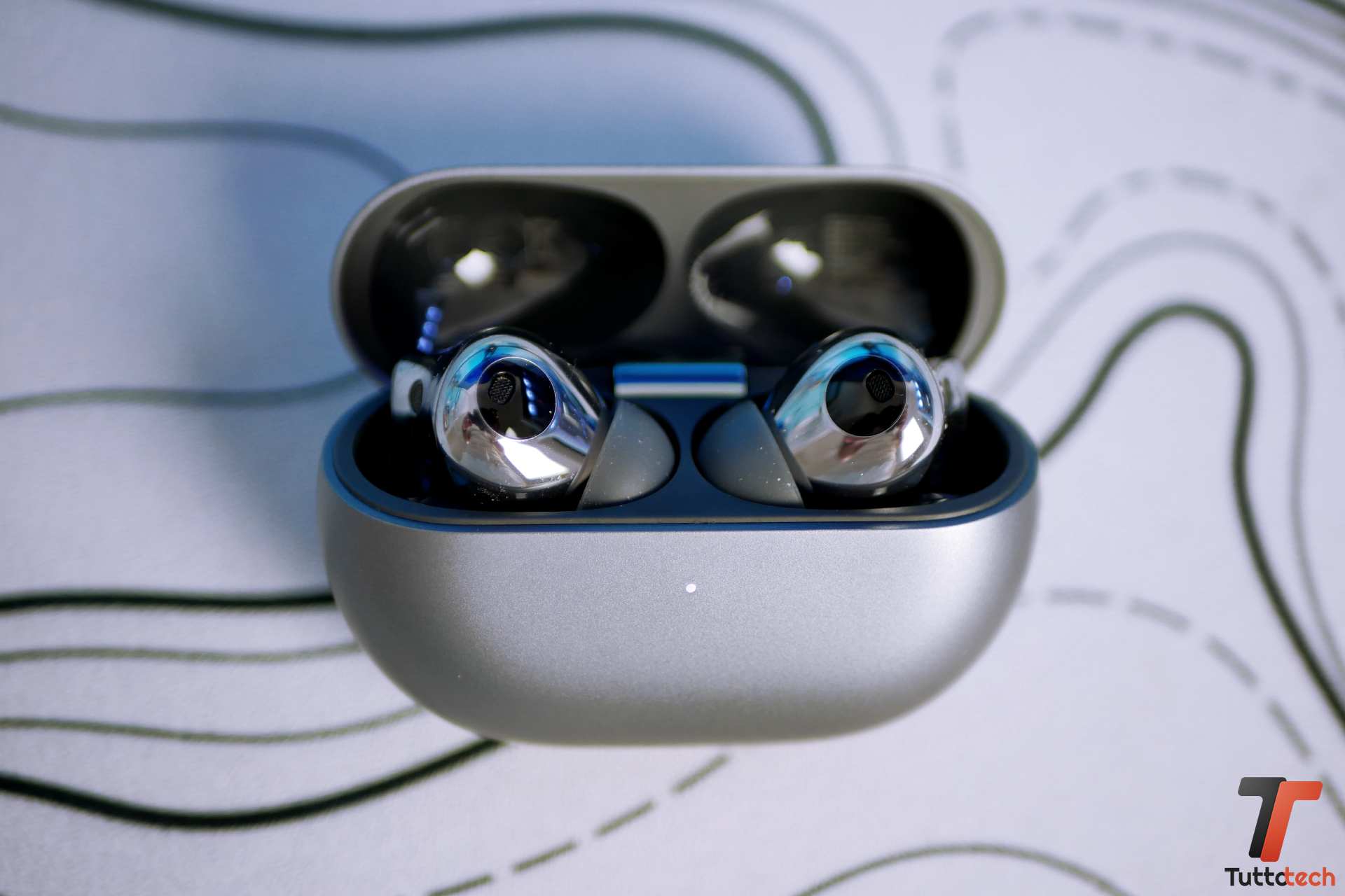 Per quanto riguarda la durata della batteria (55 mAh per cuffia, 510 mAh custodia), gli auricolari da soli offrono circa 4 ore di riproduzione con ANC attivo e fino a 6 ore con l’ANC disattivato. Considerando la custodia, la durata si estende a 20 ore con l’ANC attivo e 29 ore con l’ANC off. C’è il supporto alla ricarica wireless ed anche rapida via USB-C, bastano solo 40 minuti per una carica completa.