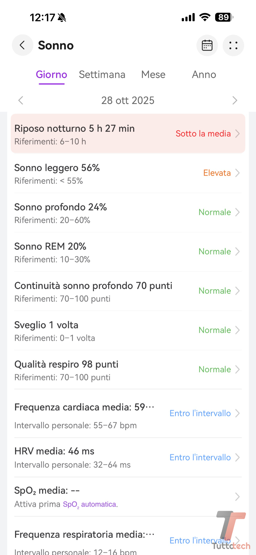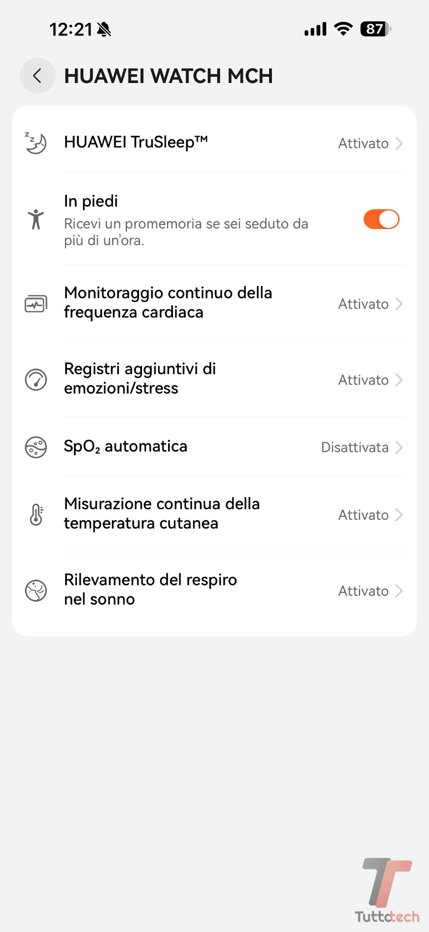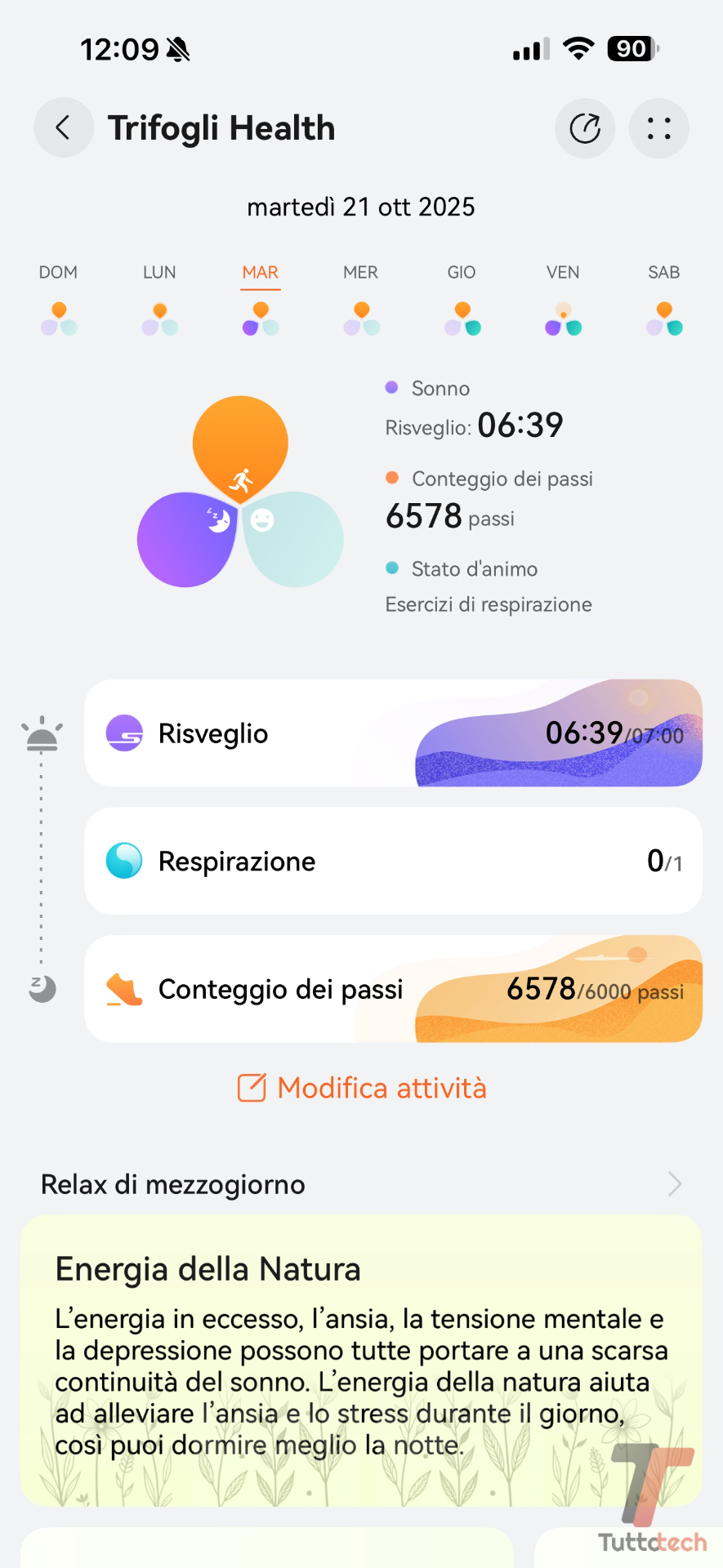 In termini di usabilità, HarmonyOS si comporta come un vero e proprio sistema “chiuso”, ma molto efficiente, offrendo un menu impostazioni più ricco rispetto ai modelli passati, con nuove voci, slider e controlli rapidi che facilitano la gestione di tutto il device. Le schede che si aprono con uno swipe laterale mostrano più metriche contemporaneamente, facilitando il monitoraggio di stress, frequenza cardiaca, SpO₂ e altro ancora, senza dover entrare in menu multipli.