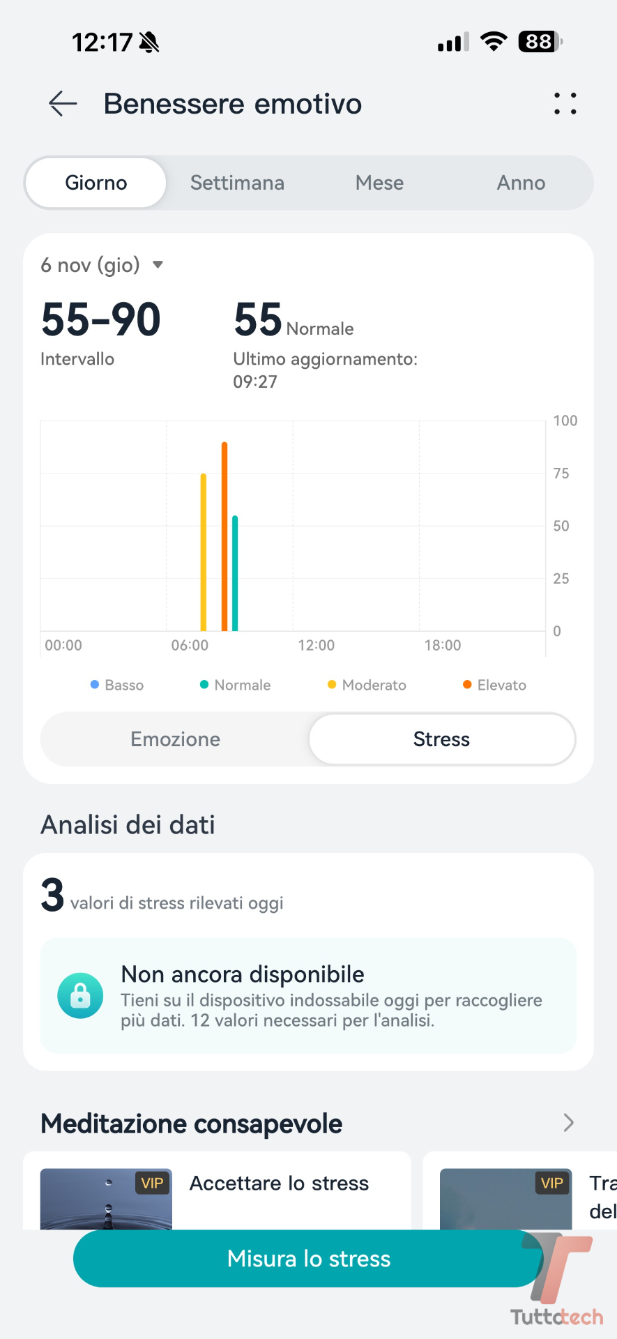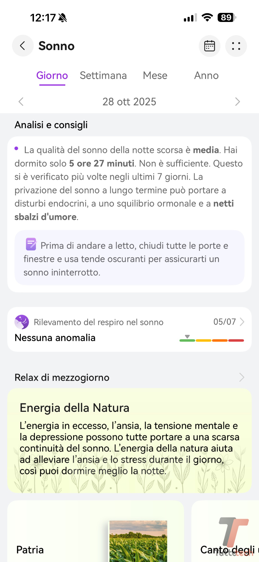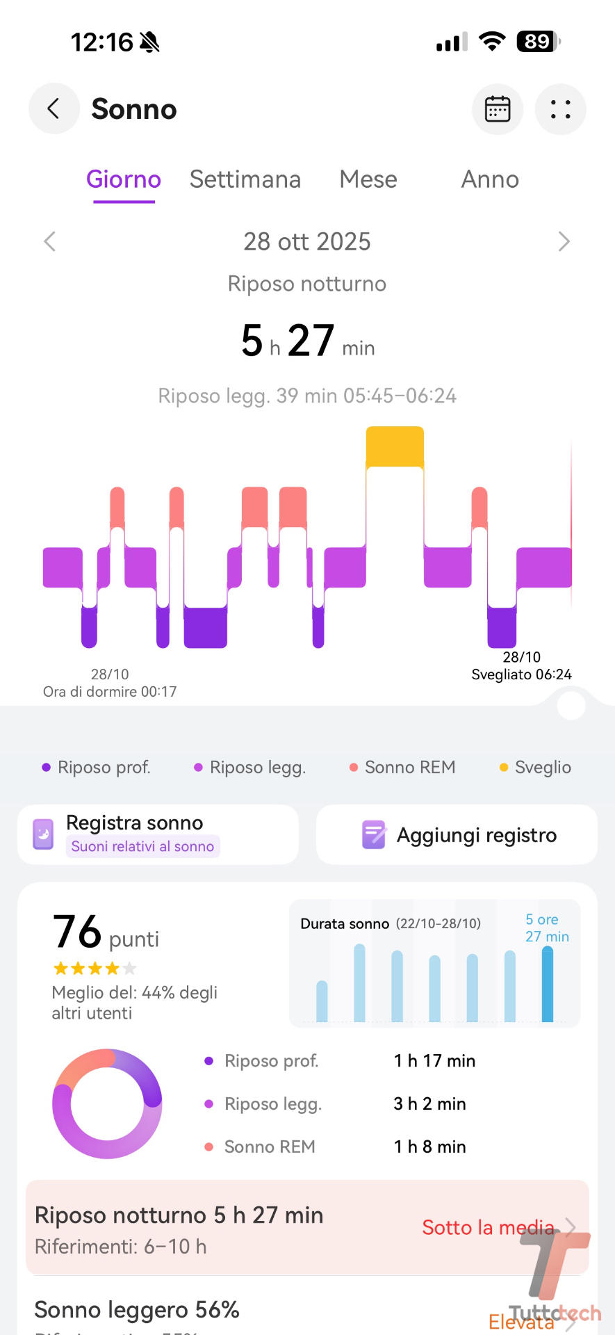 In termini di usabilità, HarmonyOS si comporta come un vero e proprio sistema “chiuso”, ma molto efficiente, offrendo un menu impostazioni più ricco rispetto ai modelli passati, con nuove voci, slider e controlli rapidi che facilitano la gestione di tutto il device. Le schede che si aprono con uno swipe laterale mostrano più metriche contemporaneamente, facilitando il monitoraggio di stress, frequenza cardiaca, SpO₂ e altro ancora, senza dover entrare in menu multipli.