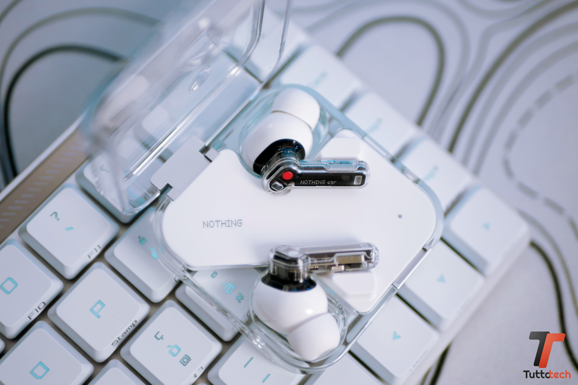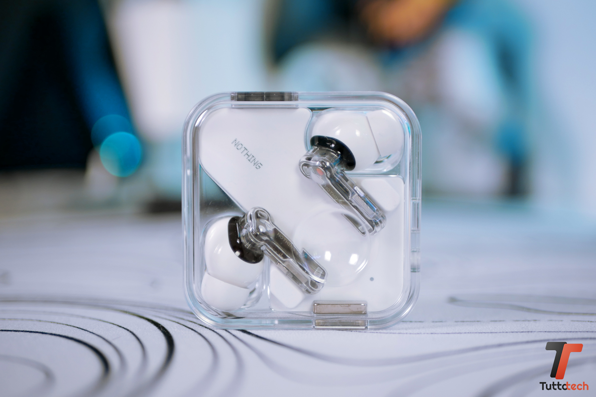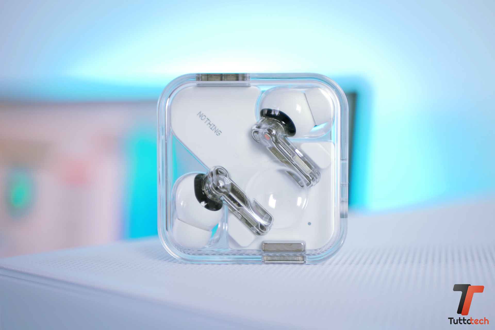 Per il resto sono le Nothing Ear di sempre, ricche di dettagli e ritocchi che in giro per la scocca. Il blocco in plastica bianca farà anche da base alle cuffie per evitare l’eccesso di graffi della primissima generazione generazione.