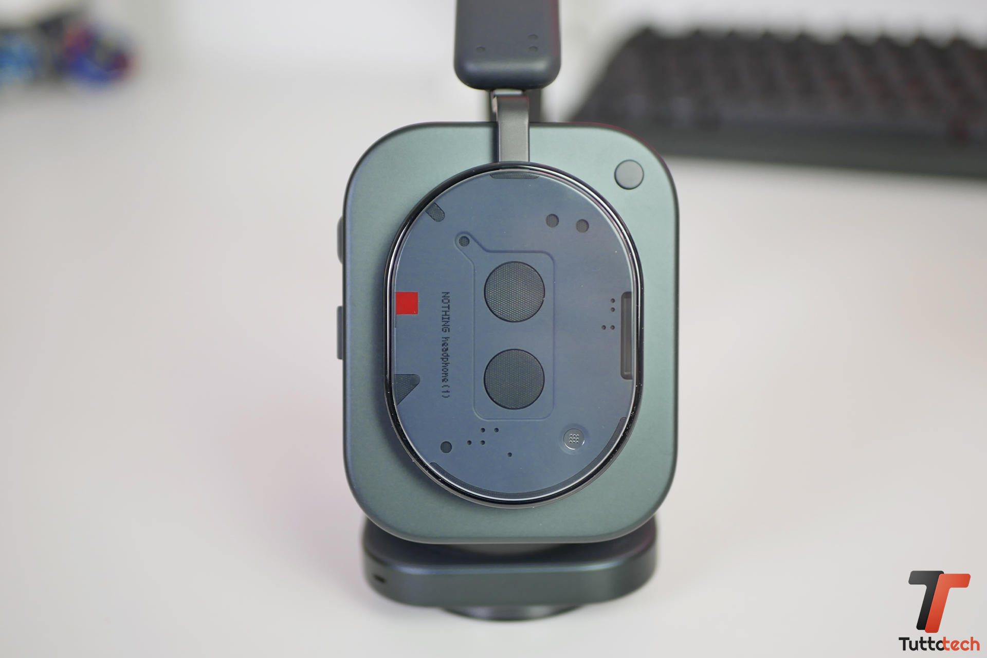 I materiali sono ben scelti e ben lavorati. Il mix tra alluminio lavorato CNC, plastiche trasparenti ad alta resistenza e memory foam in PU genera una struttura al tempo stesso solida e confortevole. Le linee delle cuffie sono pulite ma funzionali, e ogni dettaglio, dalla curvatura dei padiglioni alla profondità degli speaker, è stato studiato per offrire una calzata stabile, adatta a svariate forme del capo. Gli archetti telescopici si regolano con precisione anche se inizialmente risultano leggermente rigidi. Nulla di particolarmente critico: si spera che con l’uso quotidiano si ammorbidiscano. Attenzione, Nothing ci ha confermato che i padiglioni non sono sostituibili e non esistono parti di ricambio, in caso di forte usura andranno spedite in riparazione.