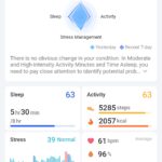In linea generale possiamo dire che l’applicazione è molto data-centrica, viene infatti data molta enfasi al dato grezzo corredata però da alcune spiegazioni. La metrica principale è il Wellness Balance ovvero un grafico a radar che aggrega la qualità del sonno, dell’attività, i segni vitali e lo stress per fornire un indicatore a confronto col giorno prima, per avere un’indicazione se durante le prossime ore si può fare meglio o va bene così. Altrove, sono presenti grafici che mostrano le tendenze nell’arco di una settimana, mese o anno e alcuni grafici di facile comprensione su ciascuna delle statistiche vitali come frequenza cardiaca, ossigeno nel sangue e HRV.