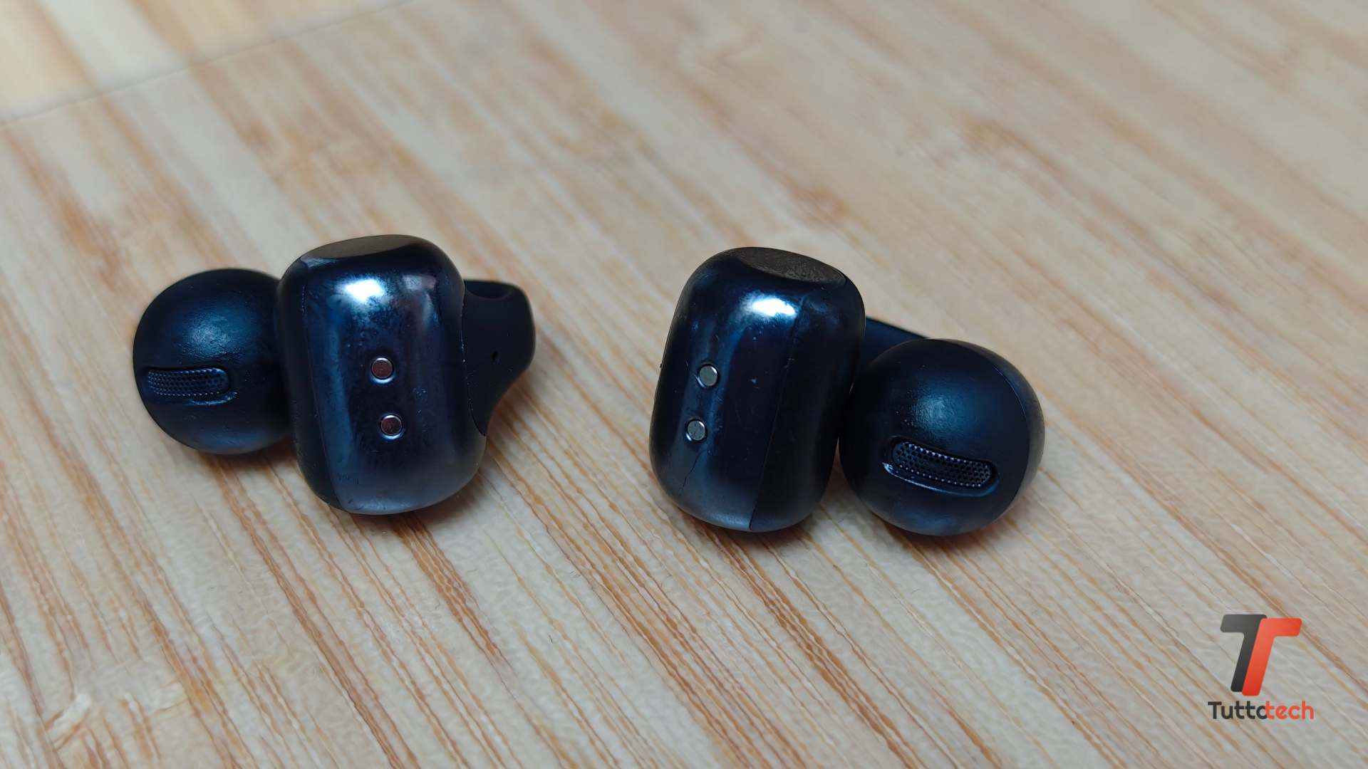 Una funzione che abbiamo apprezzato parecchio è il rilevamento intelligente del lato destro e sinistro, che non fa distinzione tra auricolare destro e auricolare sinistro. Una comodità quando li dovete mettere in carica ma anche se li tenete in tasca e volete indossarli rapidamente. Il sistema funziona effettivamente bene, e provando a invertire gli auricolari anche i comandi touch si adeguano senza alcun problema.