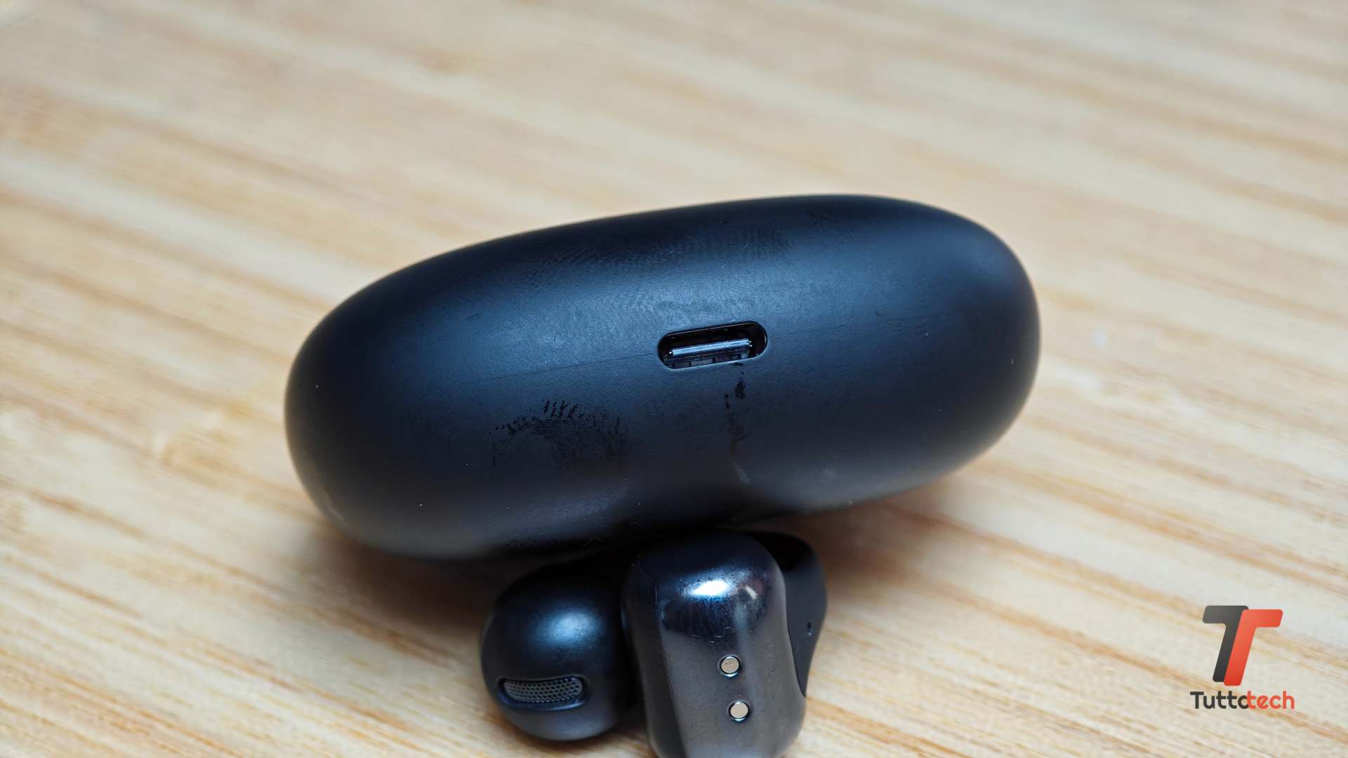 Per quanto riguarda la connettività troviamo il Bluetooth 5.4, con una copertura che raggiunge tranquillamente i 10 metri anche in ambienti chiusi. Sono supportati i profili A2DP, AVRCP e HFP, oltre ai codec AAC e SBC. Sono inoltre presenti quattro microfoni per la cancellazione del rumore basata su IA, che interviene anche per rendere ancora più chiara la voce degli interlocutori durante le chiamate.