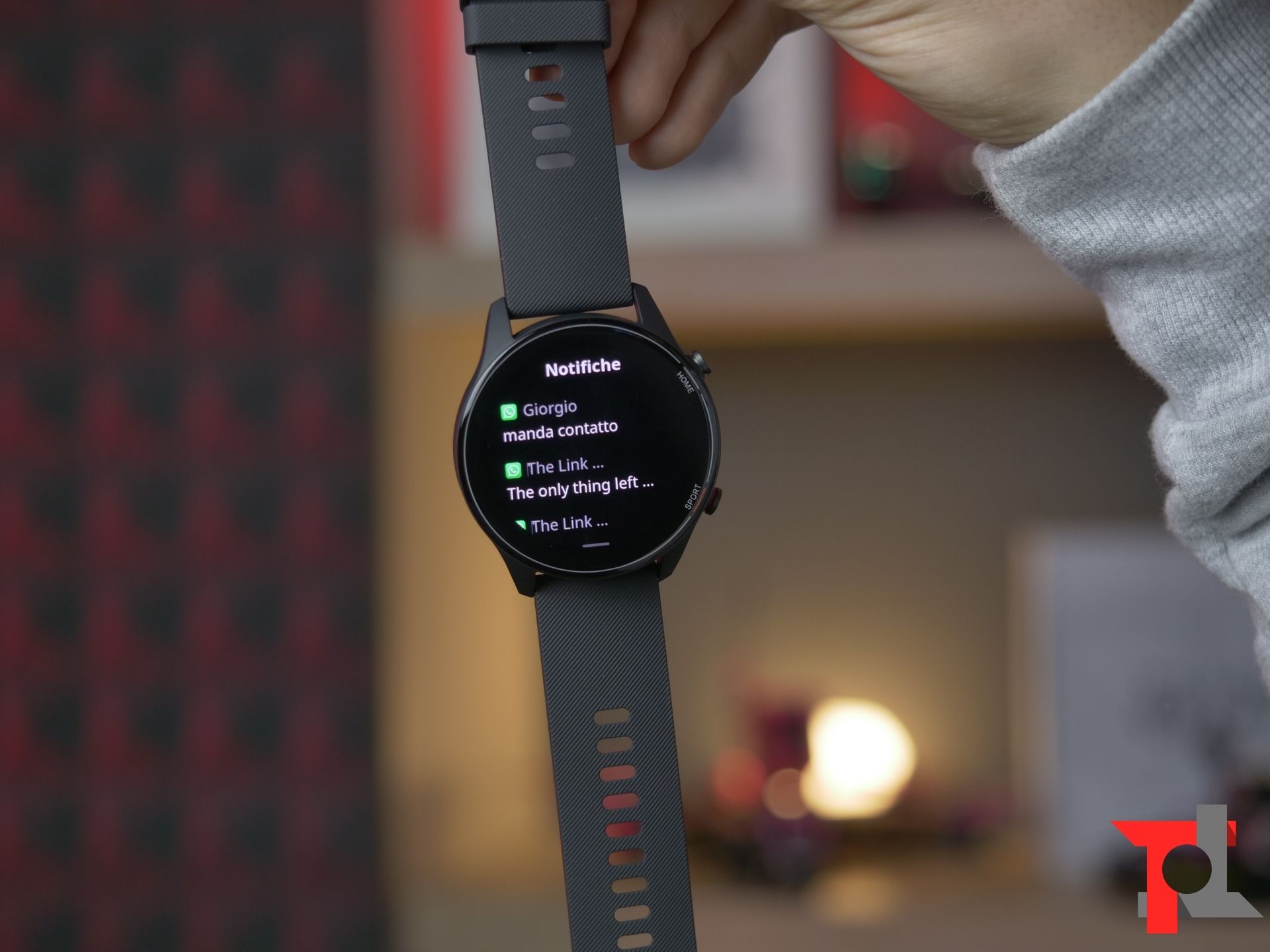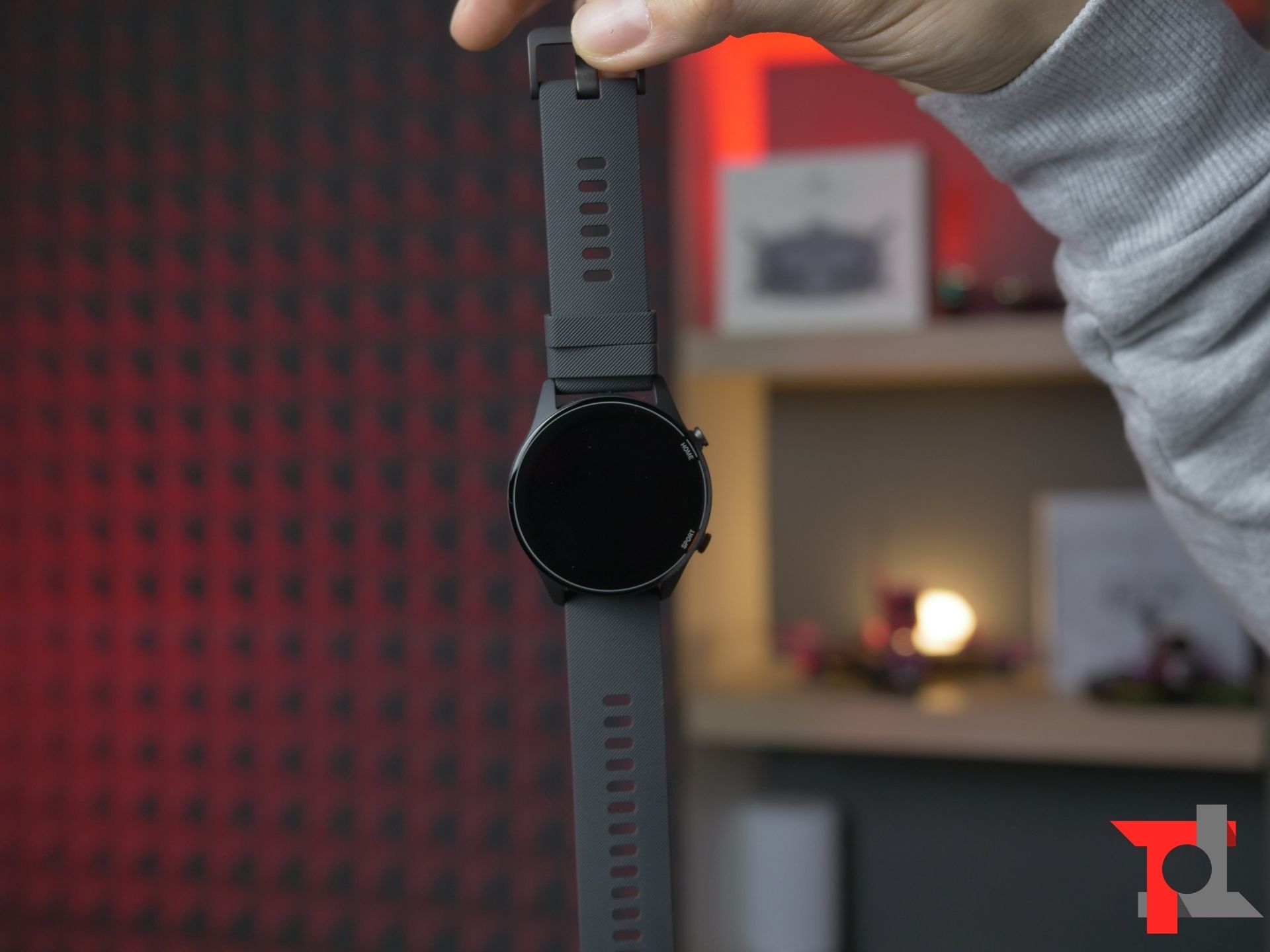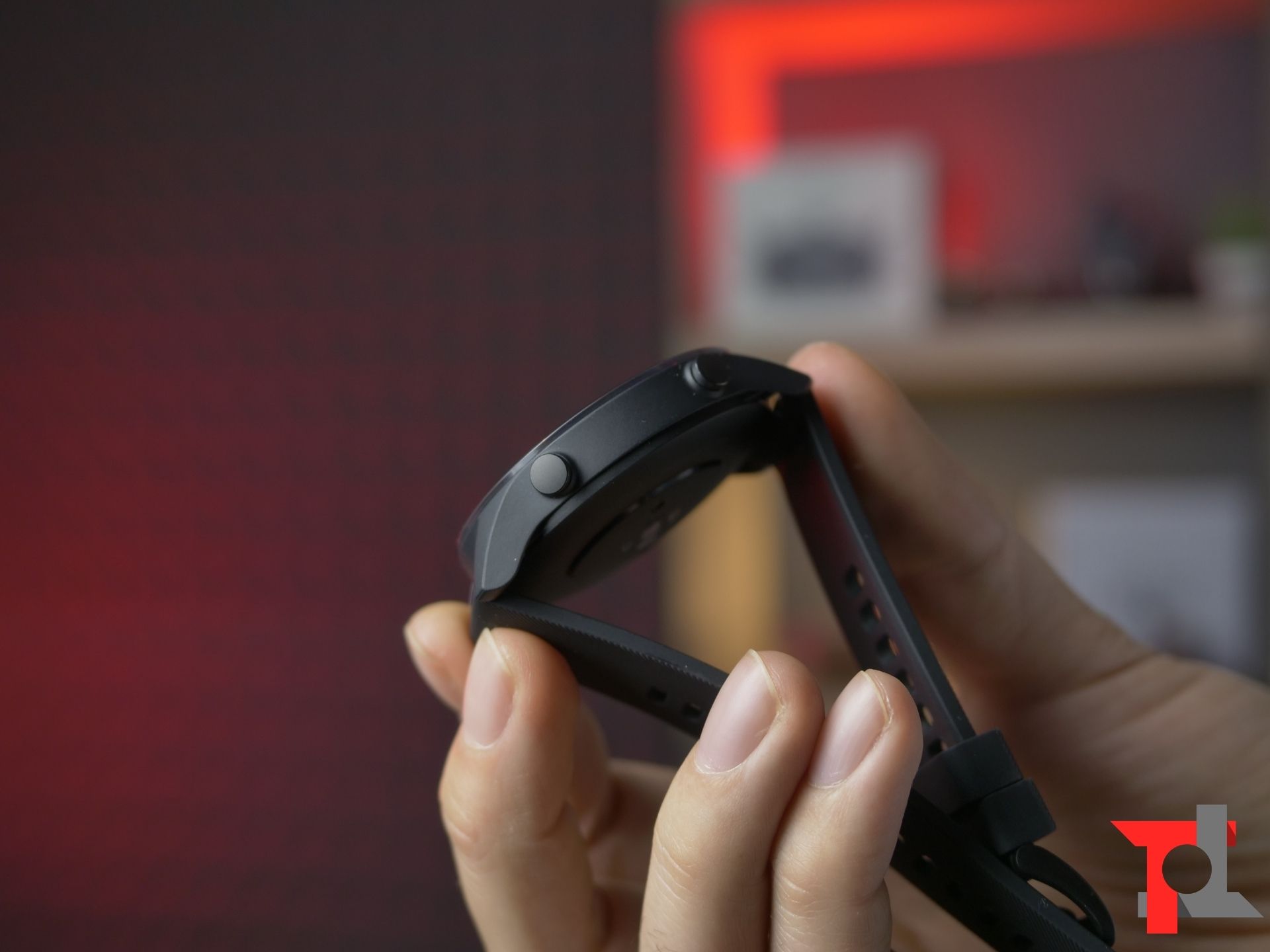 Fate però molta attenzione a quanto stringete il cinturino, potrebbe darvi fastidio. Questo aspetto è forse l’unico cruccio relativo alla qualità costruttiva, è davvero un peccato non aver incluso in confezione qualcosa di qualità superiore. Il feeling è infatti “plasticoso” e la finitura è da smartwatch decisamente troppo cheap. Il problema fortunatamente è di facile risoluzione, basta acquistarne uno nuovo e sfruttare il comodo meccanismo per sostituirlo.
