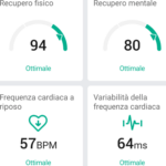 Di nuovo, rispetto ai modelli precedenti, porta con sé diverse altre funzioni finalizzate al monitoraggio e miglioramento della salute fisica e mentale: quella top, insieme a quella vista poco fa, si chiama Preparazione e, tramite la misurazione continua 24 su 24, anche e soprattutto di notte durante il sonno, di alcuni parametri vitali come frequenza cardiaca, variazione della frequenza cardiaca, temperatura corporea, respirazione, ore di sonno e vari altri, consente di avere un report sul recupero delle energie fisiche e mentali per la giornata in vista; dopo aver raccolto per 7 giorni i dati sopraccitati e quindi aver appresso le abitudini personali e i dati medi dei parametri vitali, è capace di fornire giorno per giorno informazioni sul recupero fisico e mentale dopo le ore di sonno, così da conoscere subito come si è messi fisicamente e mentalmente in vista della nuova giornata da affrontare. E devo dire che anche questo report è estremamente preciso e affidabile e delle volte pare che ne sappia più lui su come sono messo fisicamente e mentalmente di me, perciò è assolutamente attendibile e di molta importanza.