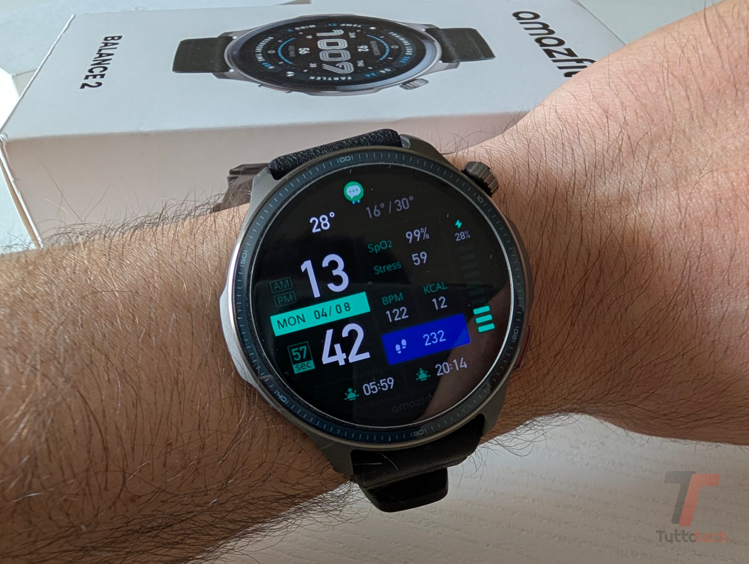In compenso però offre un’autonomia da primo della classe e trovarne altri come lui è estremamente difficile. Amazfit Balance 2 include, pensate un po’, una batteria da 658 mAh e questa, in abbinata al sistema operativo proprietario, gli permette di avere un’autonomia super, anche con always-on-display, touch-to-wake e raise-to-wake attivi. Premesso che l’autonomia è soggetta a una miriade di fattori, come numero di notifiche ricevute, luminosità e accensioni del display, sensori attivi, intervalli di misurazioni, uso del GPS e via dicendo, lui è in grado di fornire comunque un’autonomia eccellente in ogni condizione e superiore di gran lunga a quella di qualsiasi altro concorrente, soprattutto con a bordo Wear OS.
