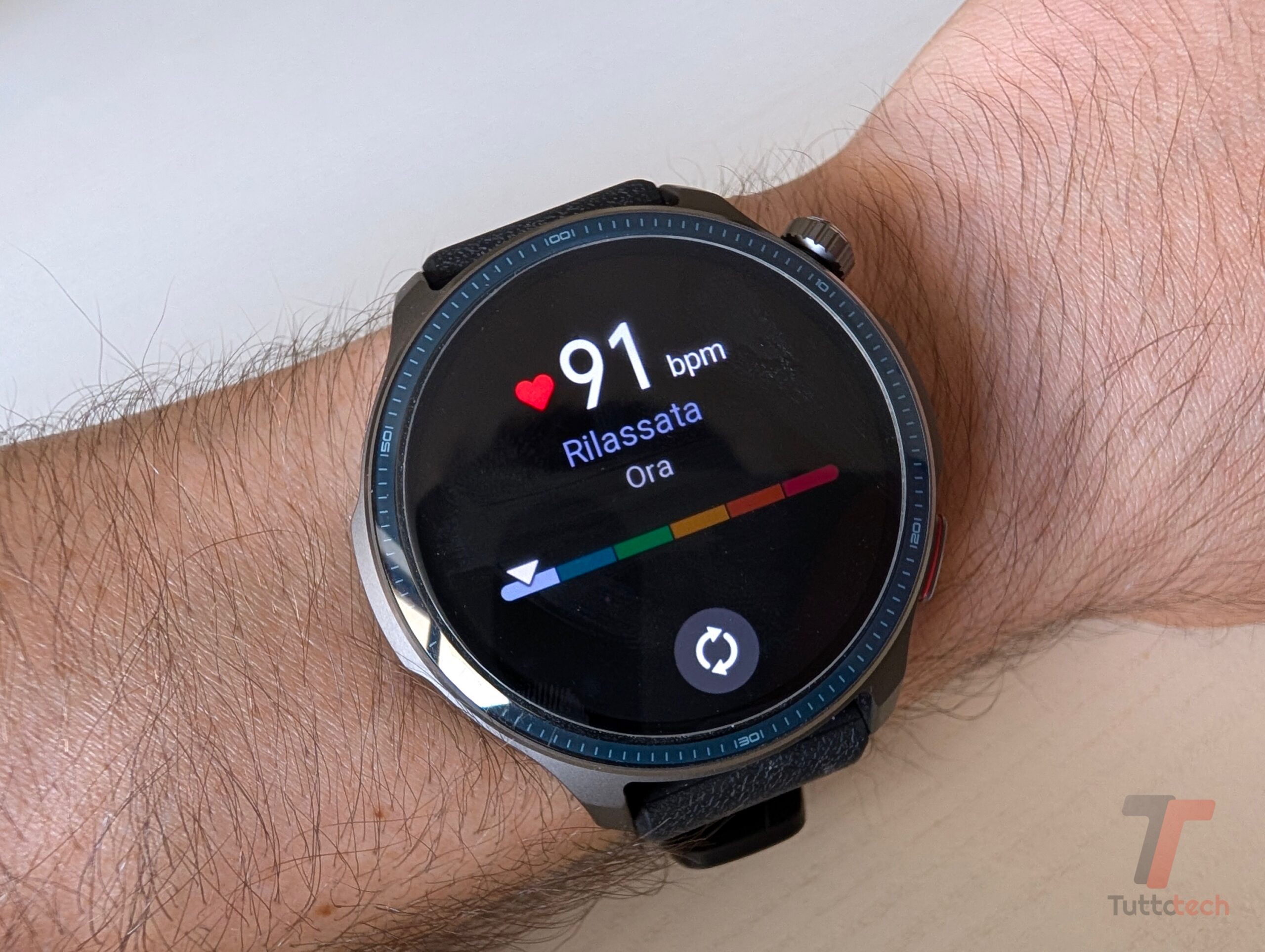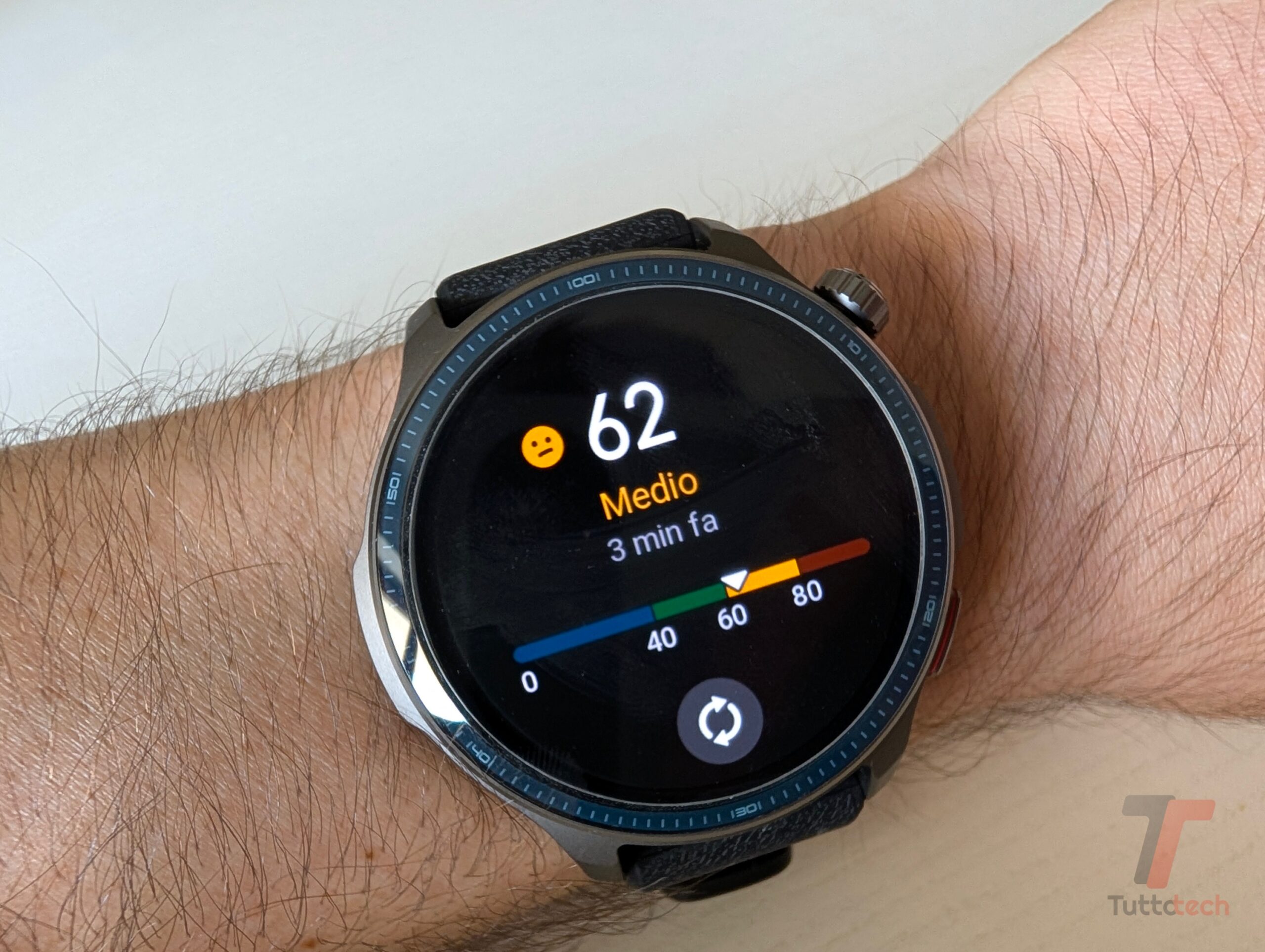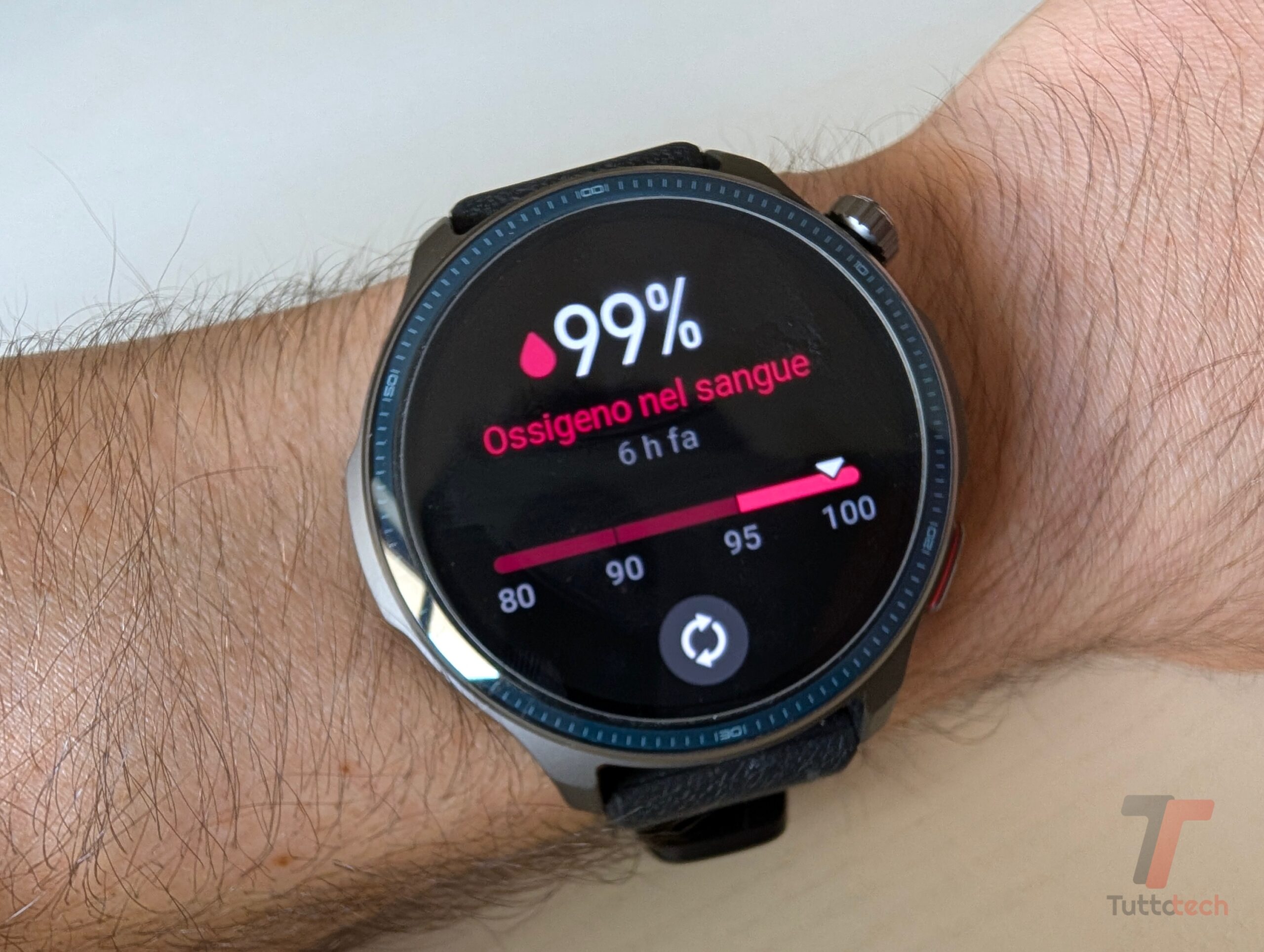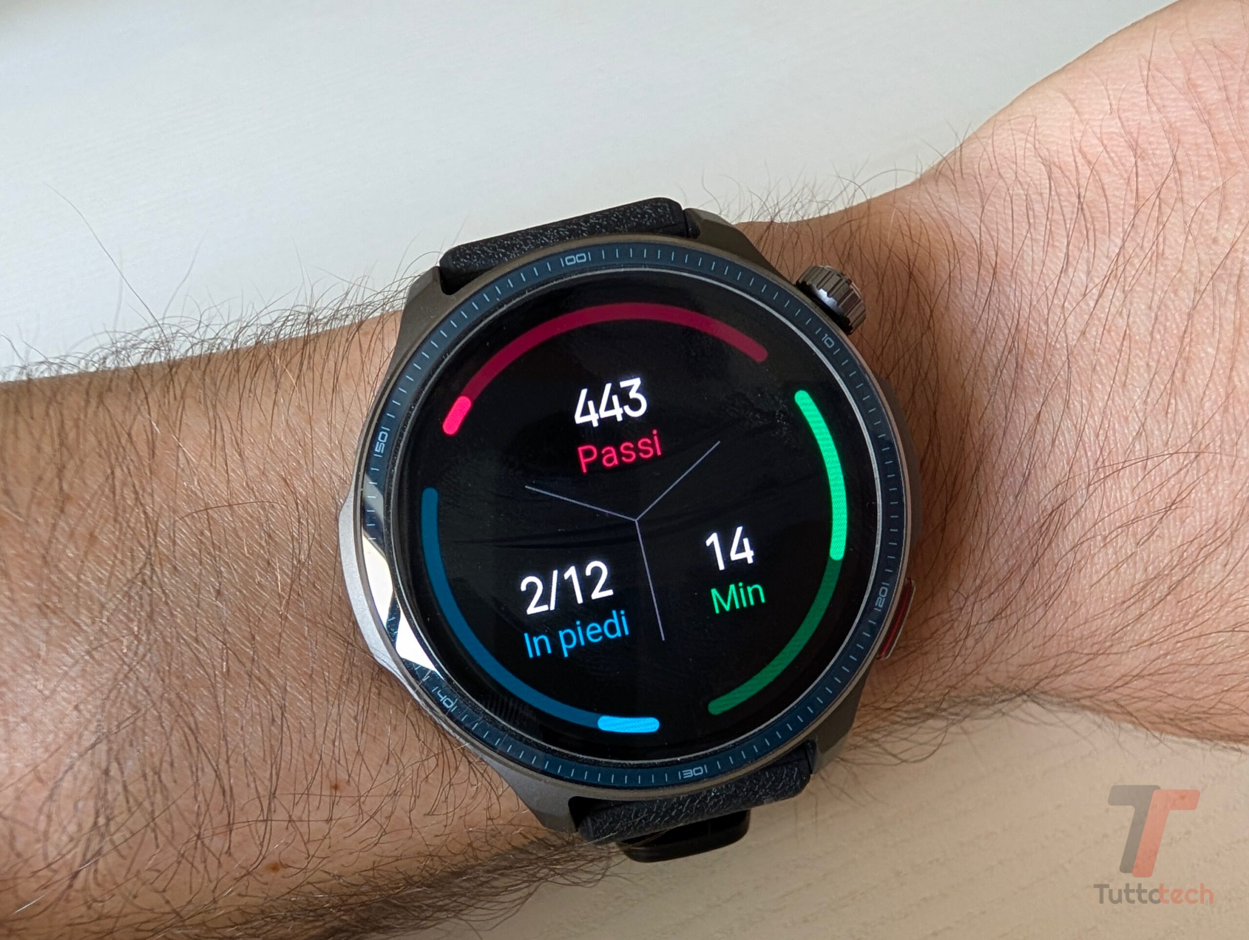 Lui utilizza il sistema operativo proprietario di Amazfit, Zepp OS, nella versione 5 annunciata in occasione del suo lancio, che si muove con fluidità e reattività grazie alle nuove ottimizzazioni e soprattutto a un nuovo SoC al suo interno ancora più potente di quello del predecessore. Bene o male, comunque, è il solito sistema operativo visto e rivisto con gli altri prodotti dell’azienda con in più una lente di ingrandimento per migliorare la leggibilità di alcune parti del sistema, la funzione BioCharge, che non è ancora disponibile per lui però dovrebbe arrivare in futuro, qualche applicazione nuova, come quella per il golf e per il jet lag, e qualche affinamento per le notifiche; a parte questo, nel complesso è uguale alla versione 4 presente nel predecessore e così nel complesso è anche l’applicazione per smartphone, che è, al netto di qualche elemento, la solita vista con gli smartwatch di Amazfit, sia graficamente che a livello di funzioni.