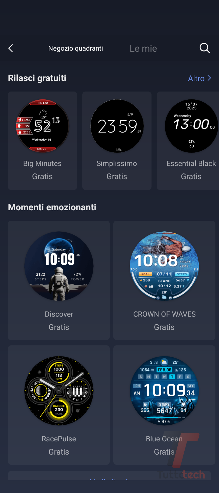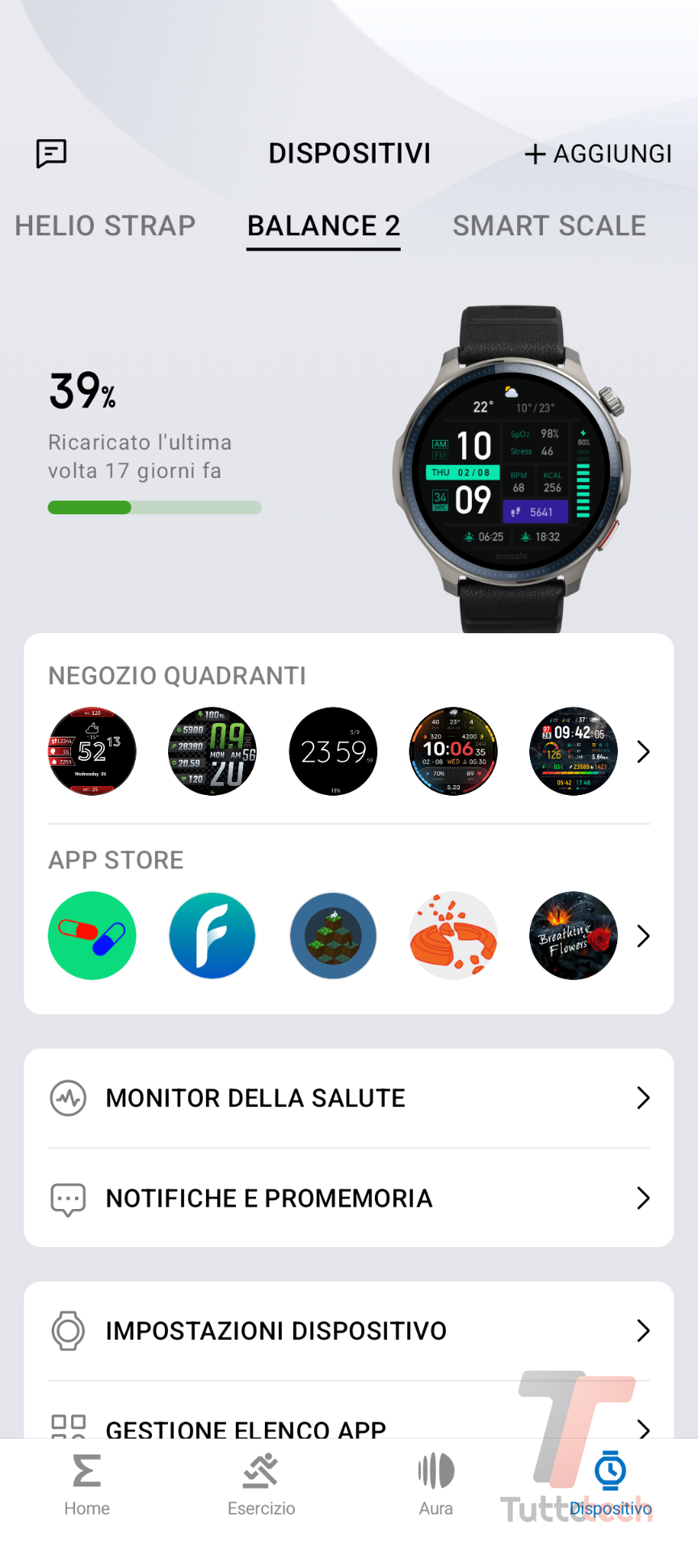 Anche se è la solita, peraltro rinnovata completamente qualche mese fa, dobbiamo spendere qualche parola nei suoi confronti perché fra tutte quelle per gestire questo genere di dispositivi è senza dubbio quella più bella, chiara e funzionale: fra i suoi punti di forza, a parte il design chiaro e minimale fatto di grafici e dati, ci sono la divisione in schede, la personalizzazione, il supporto al tema scuro, la fluidità, la velocità di sincronizzazione dei dati e soprattutto il supporto a più dispositivi simultaneamente. Ok Zepp OS 5 che è bene o male il solito sistema operativo con le solite cose, ma l’applicazione per smartphone di Amazfit è di un livello superiore rispetto a quelle della concorrenza e con Amazfit Balance 2 riesce a dare il meglio di sé perché mette a disposizione tutte le sue funzioni, anche a livello di watchface e mini-applicazioni scaricabili dallo store.
