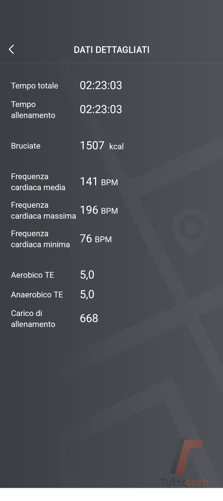 Supporta poi la condivisione dei dati con applicazioni di terze parti, come Google Fit, Strava e Adidas Running, accessori esterni come fascia cardio per la corsa e misuratore di potenza per il ciclismo, l’importazione dei file di rotta, PeakBeats e supporta soprattutto le mappe offline, utili per la navigazione soprattutto in caso di escursioni; a queste si aggiungono funzioni che sfruttano l’intelligenza artificiale, che combinano speciali algoritmi e i dati raccolti dai sensori, come Zepp Allenatore e Zepp Coach AI Chat, che insieme svolgono la funzione di un allenatore personale focalizzato sulle prestazioni, sugli obiettivi e sulle caratteristiche fisiche personali. Non si fa mancare poi i soliti accessori integrati utili per sport all’aria aperta, come barometro, bussola e soprattutto A-GPS, che è veloce e molto preciso nella geolocalizzazione grazie anche all’aiuto altri cinque sistemi di navigazione. Per quello che abbiamo potuto vedere, utilizzandolo per i nostri allenamenti calistenici in palestra con riconoscimento automatico delle attività, i dati raccolti sono veritieri, affidabili e in linea con quelli di altri prodotti; quello che più sorprende di lui è la prontezza con cui reagisce alle variazioni di ossigeno nel sangue e della frequenza cardiaca e con cui si adatta agli stimoli diversi durante l’allenamento: da questo punto di vista, lui è top e non si perde niente.