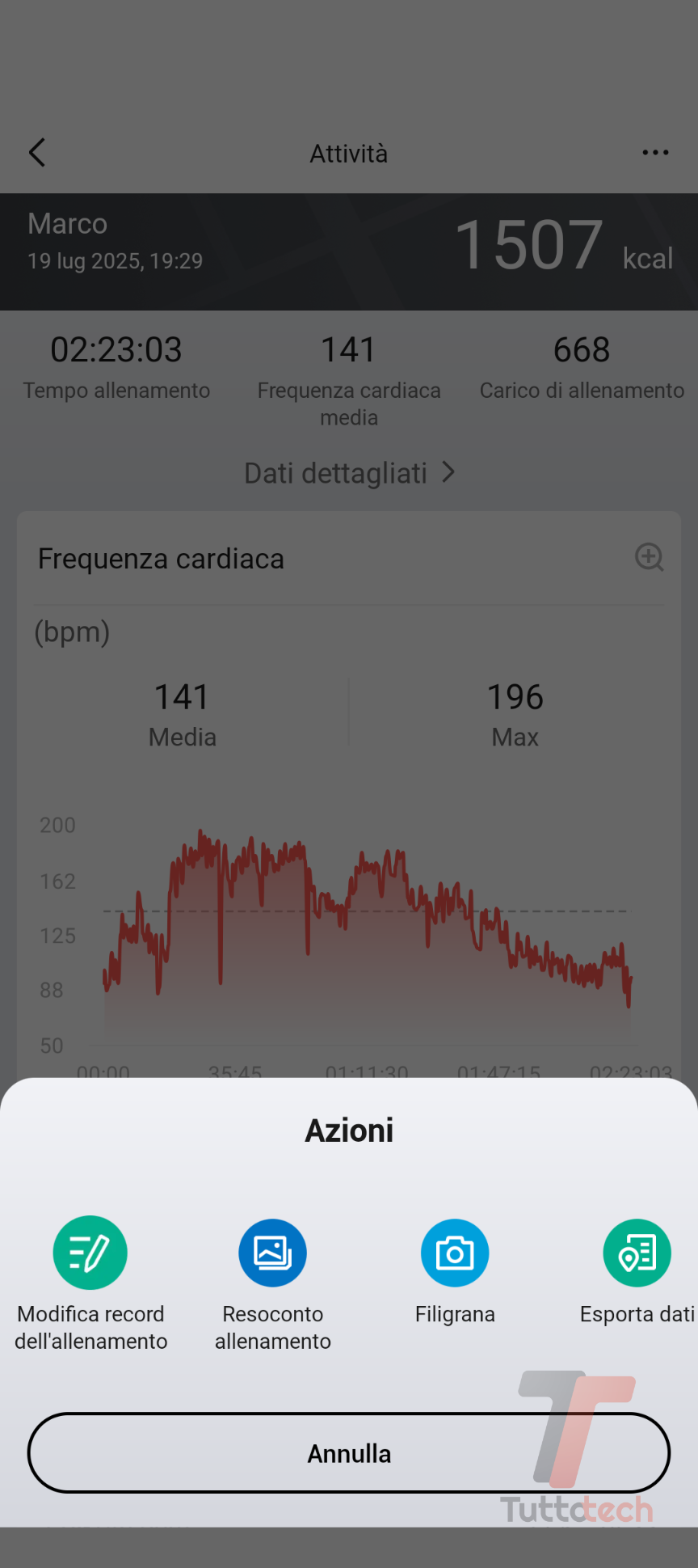 Lui è uno smartwatch con un occhio di riguardo nei confronti dello sport e questo è chiaro da subito perché leggendo la scheda tecnica viene fuori che supporta oltre 170 modalità sportive, fra le quali spiccano golf e HYROX e troviamo persino i giochi da tavolo come dama e scacchi e modalità assurde come “spalatura della neve“. Non sappiamo a chi servano queste oltre 170 modalità sportive e quanto vengano registrate con precisione, ma ci sono. Non c’è qualche cosa di praticabile che lui non supporti e il bello è che delle modalità sportive più comuni è in grado di registrare i dati in modo specifico, così da fornire un quadro ancor più completo e personale dell’allenamento svolto; in casi del genere non si limita a registrare i dati soliti come ossigeno nel sangue, battiti cardiaci, calore consumate, passi e via dicendo ma registra le caratteristiche specifiche dell’allenamento, in modo tale da avere anche un quadro dei progressi e dell’andamento nel lungo periodo.